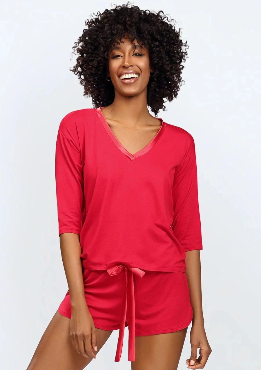 - tričko má 3/4 rukáv s výstřihem do V