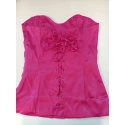 Dámský saténový korzet bez rukávů, podšitý. Přední díl pošitý kamínky Swarowski. Zavazování na zádech. Na boku zapínání na zip. Všité boční kostice.