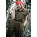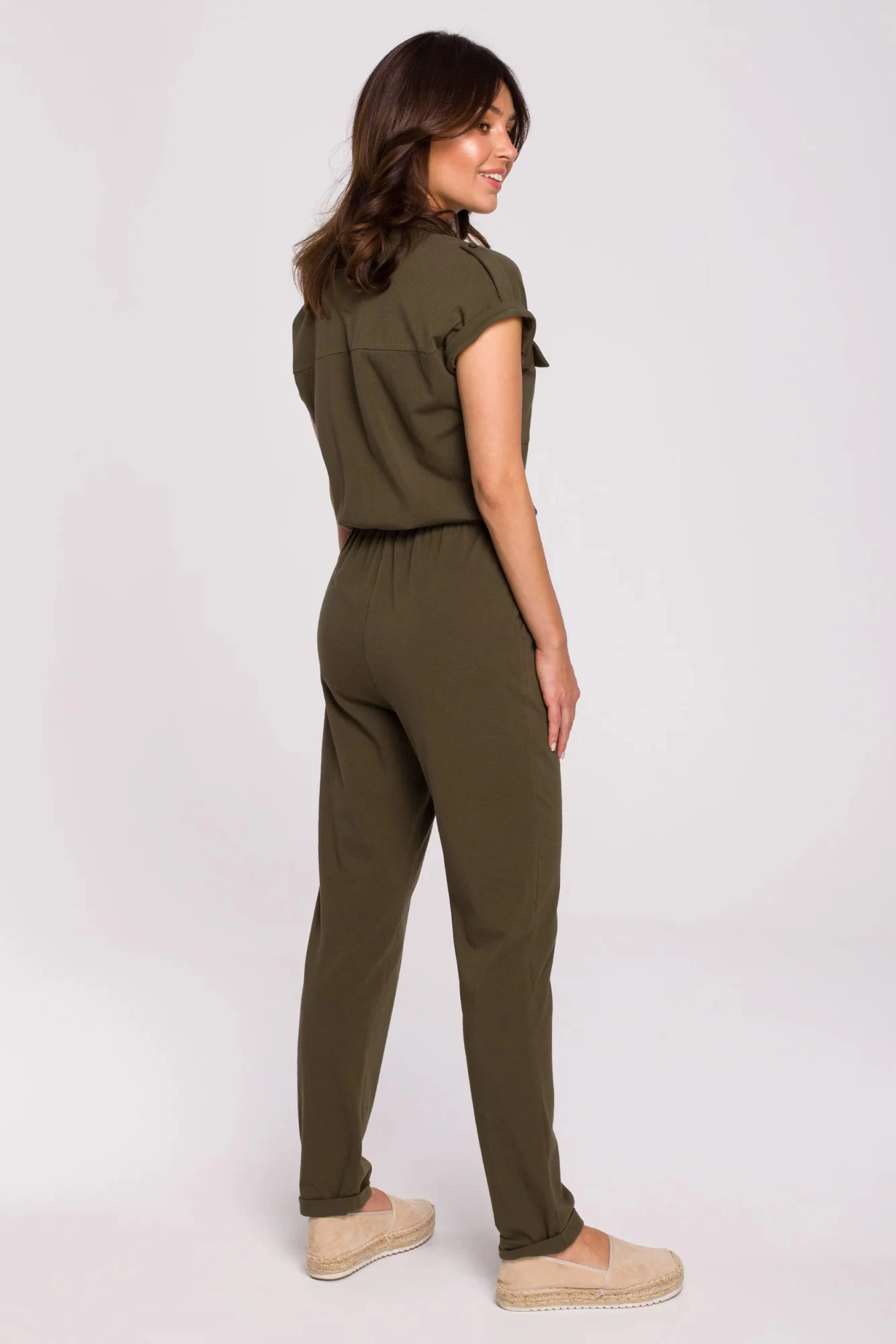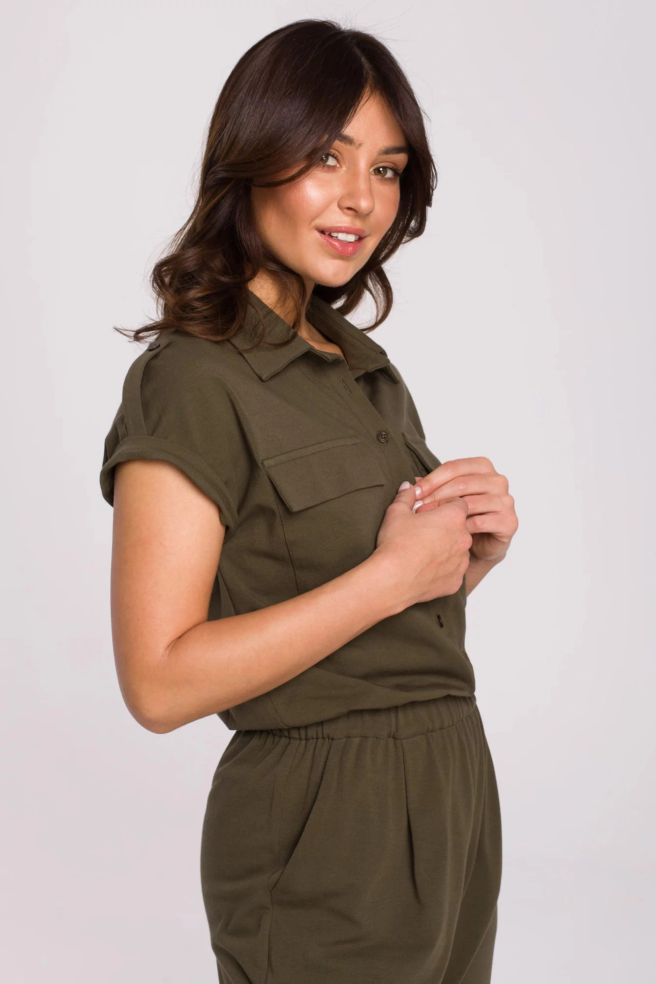 Praktické, uvolněné a dobře vypadající. Jedná se o naši kombinézu z měkkého žerzeje na bázi bavlny, která má vpředu kapsy s klopami ve stylu safari a límec. Vyberte si nejlepší barvu. Naše modelka měří 172 cm a nosí velikost S.