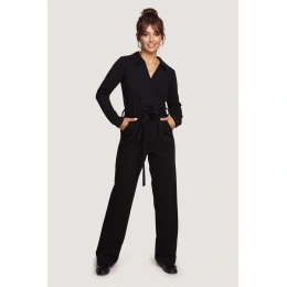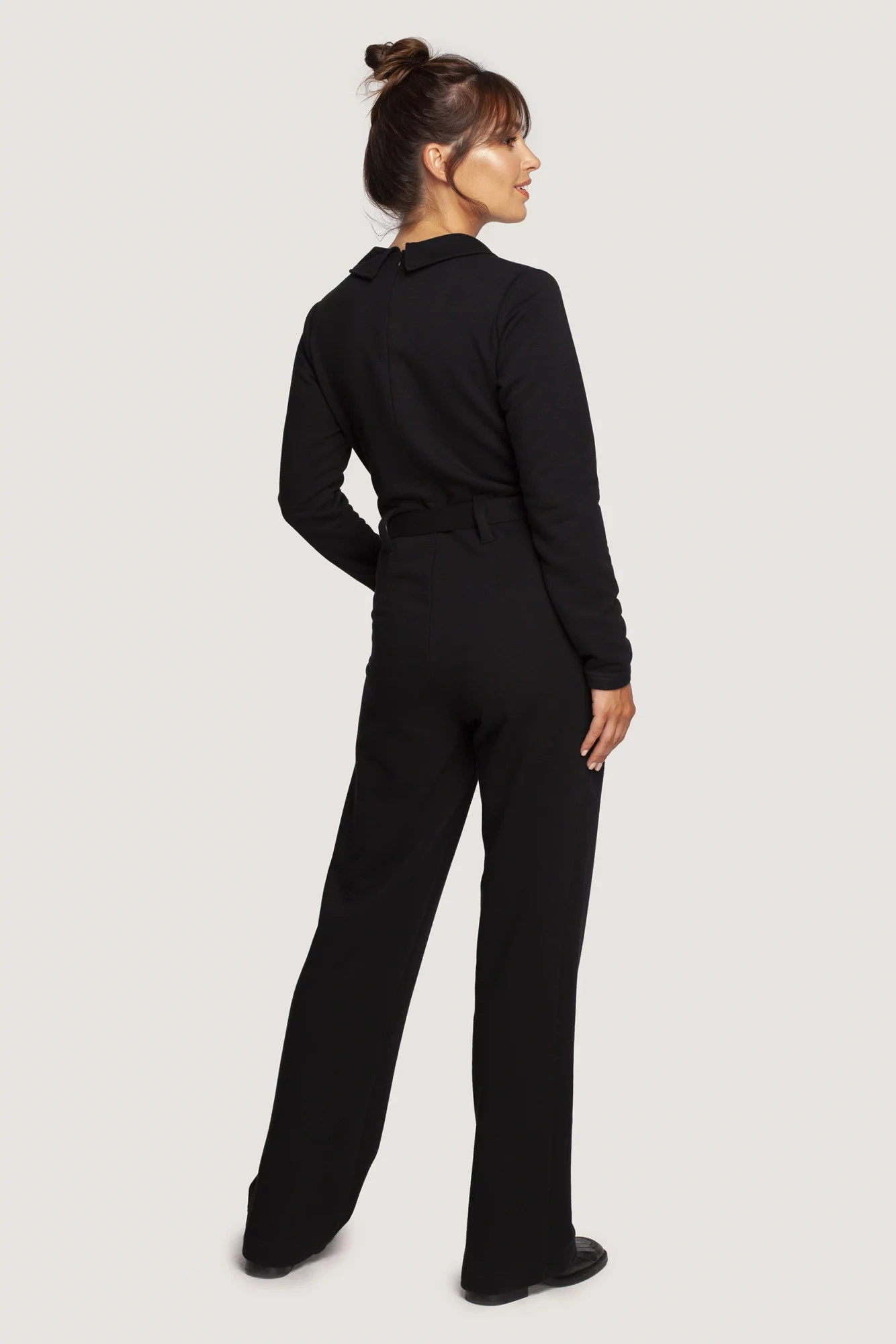 Milujeme kombinézy a vy je budete milovat také. Elegantní detaily - decentní výstřih do V zakončený límcem, široký střih nohavic a pásek na zavázání pro závěrečný dotek: tento úpletový overal z jednoho kusu je hotovým top outfitem.