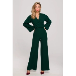 Není nic dokonalejšího než tento elegantní jednodílný overal. Se zavinovací halenkou, širokými rukávy a nohavicemi budou příjemnou alternativou večerních šatů.