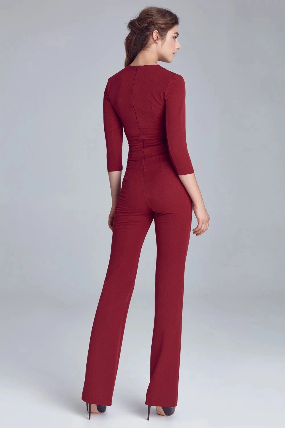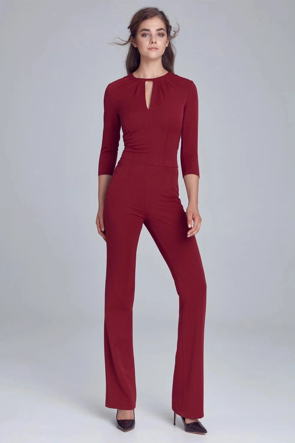 Tento krásný overal má řadu výhod. Je elegantní díky širokému střihu nohavic a rukávů, zavinovacímu