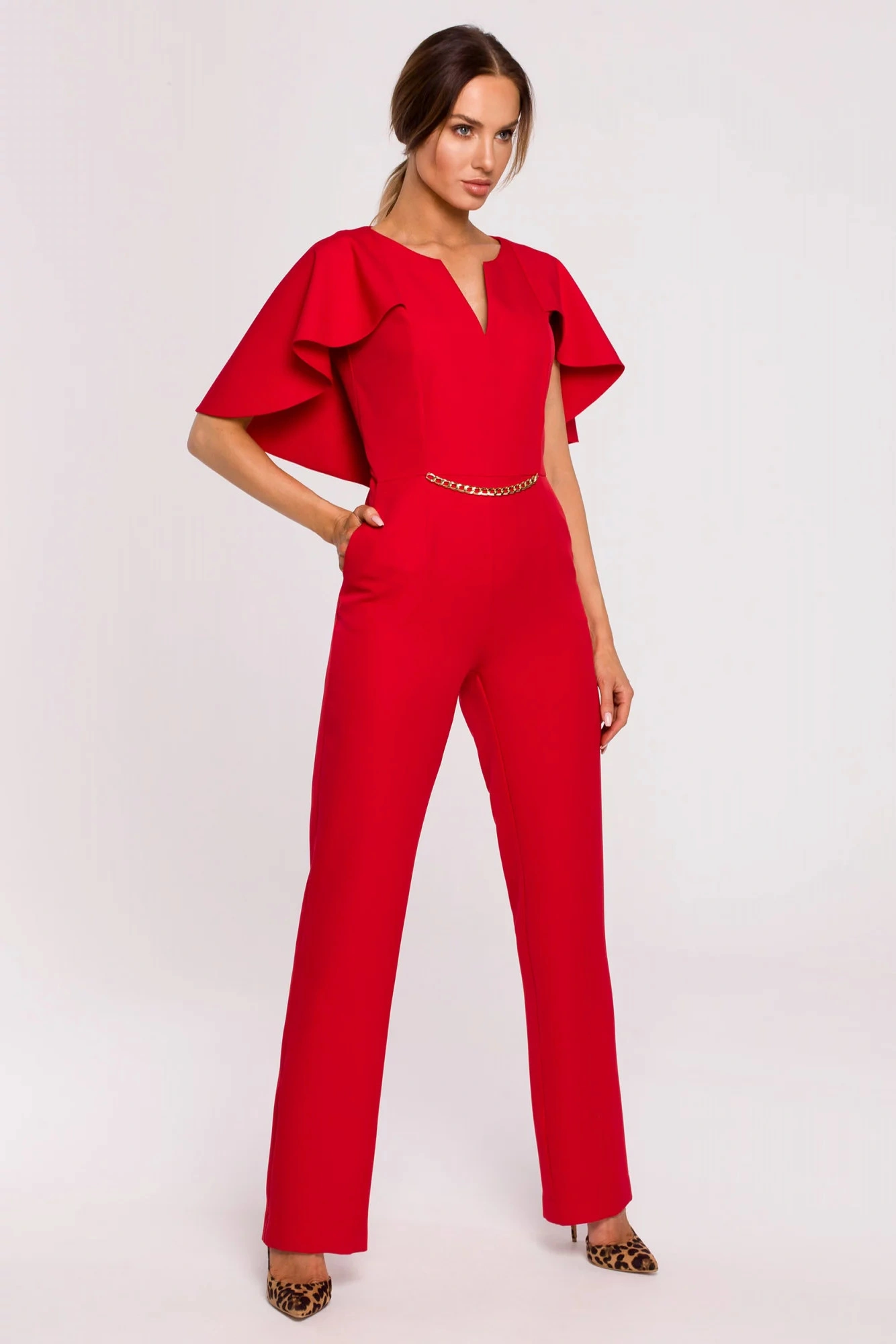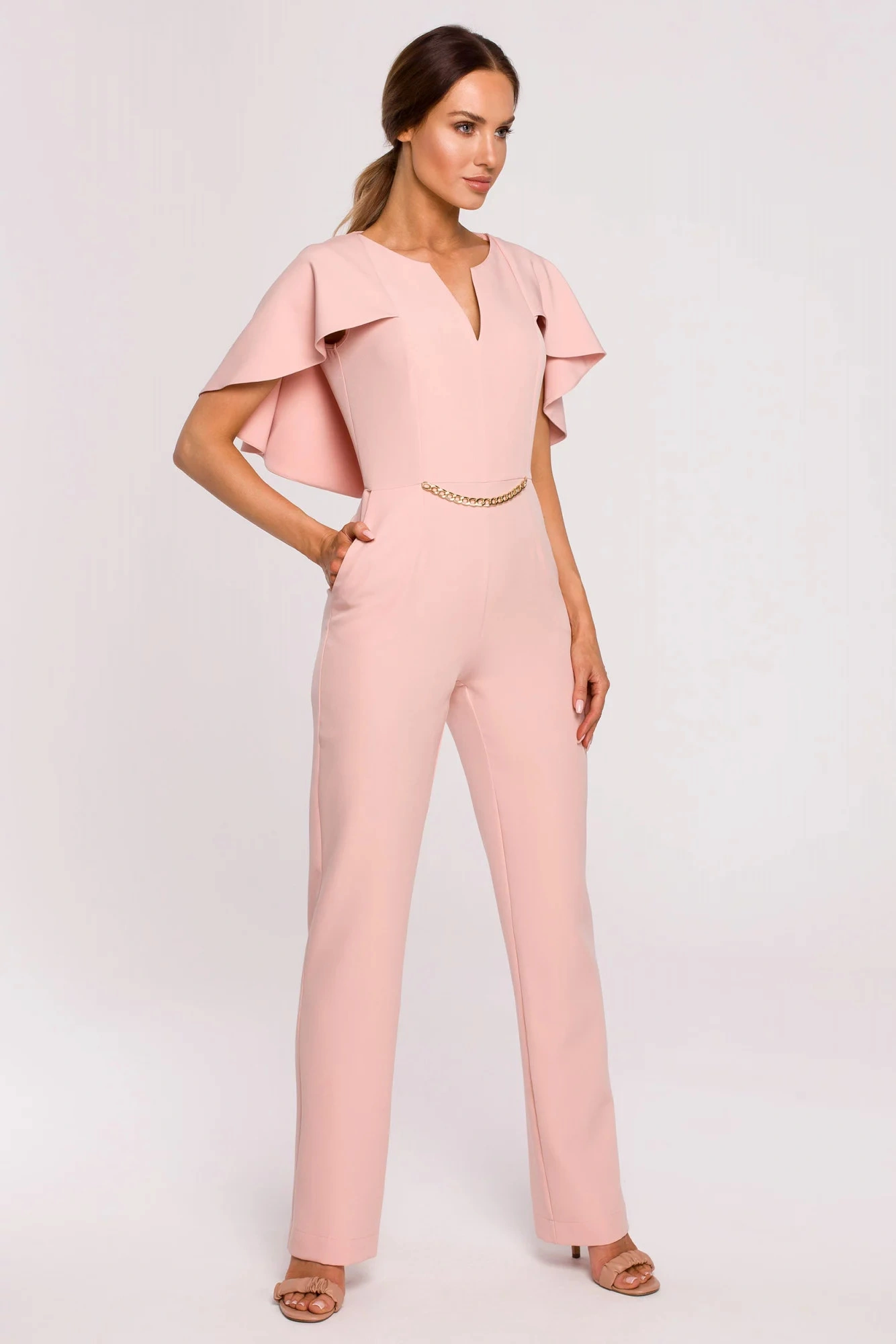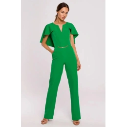 Tento overal z jednoho kusu s efektem pláštěnky na zádech a řetízkem vpředu určitě upoutá pozornost. Naše modelka měří 171 cm a nosí velikost S.