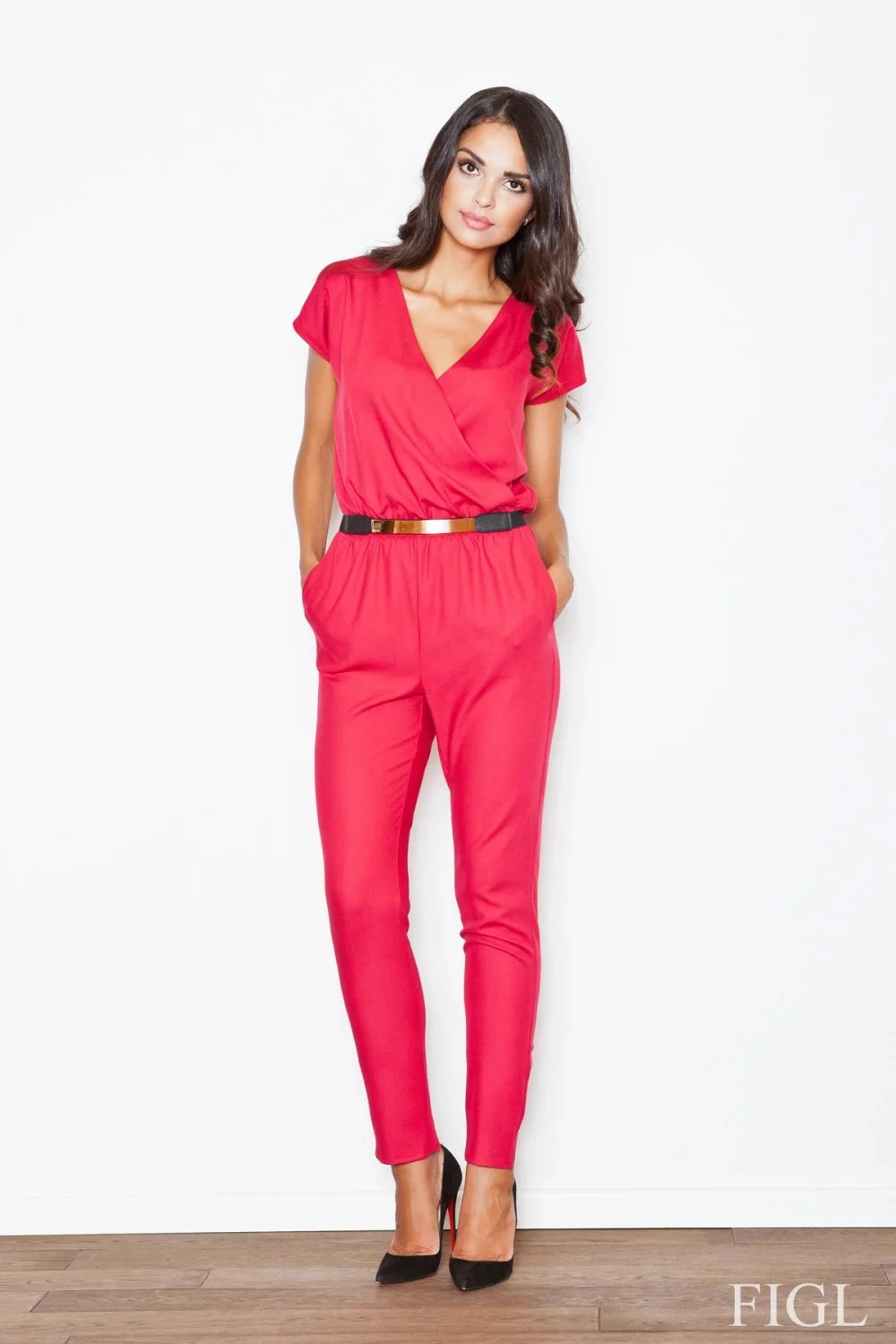 Elegantní dámský overal M397 FIGL má zavinovací top, krátký rukáv a po stranách jsou kapsy. Ozdobný pásek je součástí overalu. Vhodné do společnosti i do práce.