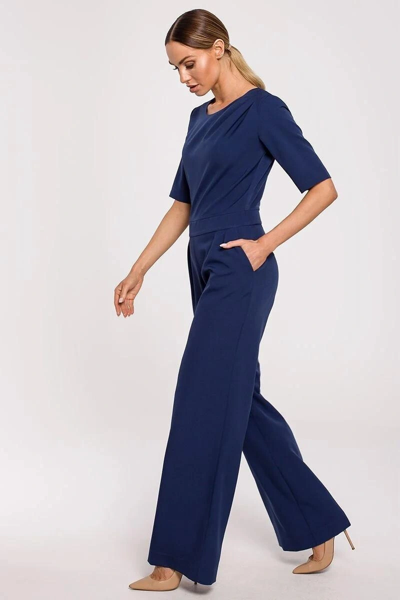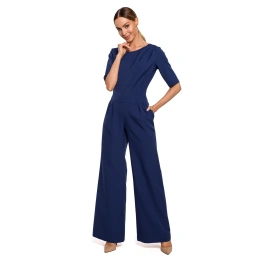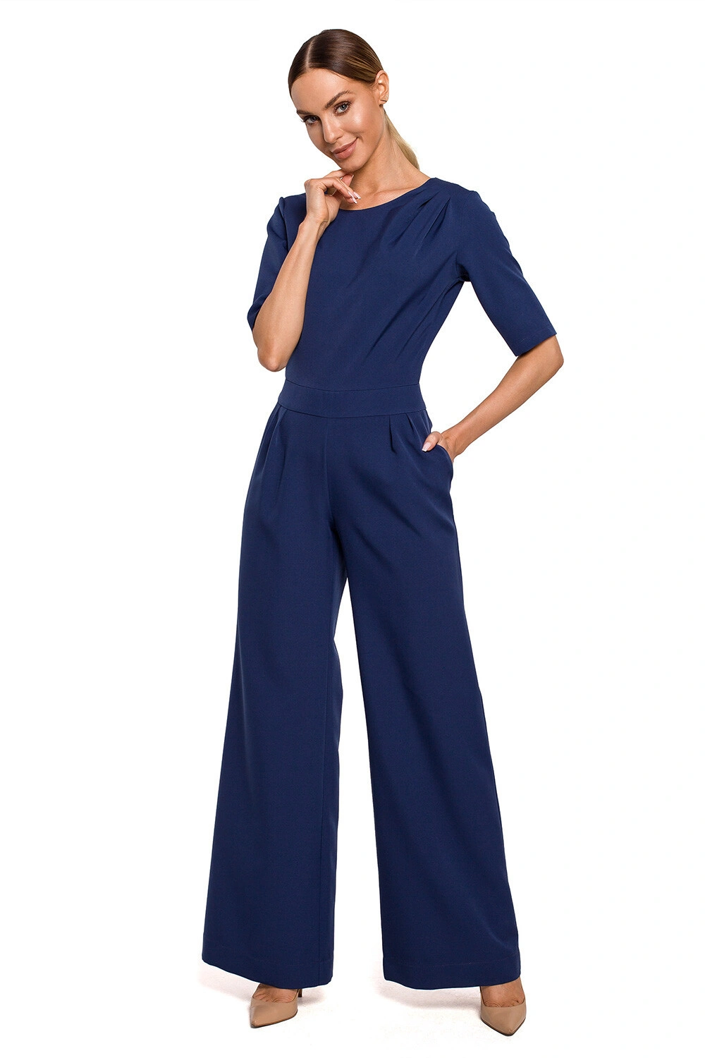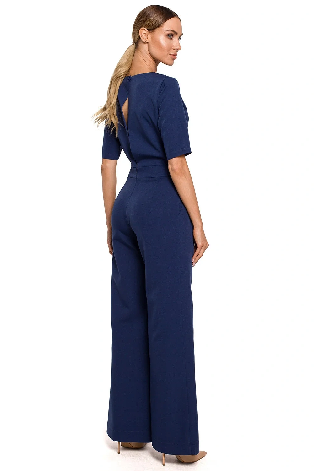 Jednodílný overal s rozparkem na zádech pro všechny druhy důležitých oslav ve vašem životě. Má krátké rukávy, široké nohavice a kapsy, které dodávají funkčnost. Oblek se zapíná na zip a knoflík.