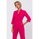 INFORMACE O PRODUKTU: kombinéza z tkané látky s šálovým límcem zapínání na zip přední nohy s ozdobným prošíváním vpředu 3/4 rukávy s rozparky naše modelka je vysoká 171 cm a nosí velikost S Navrženo a vyrobeno v Polsku