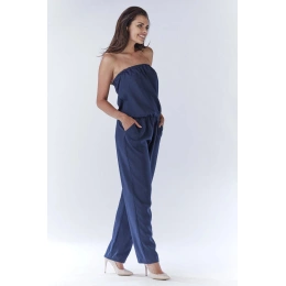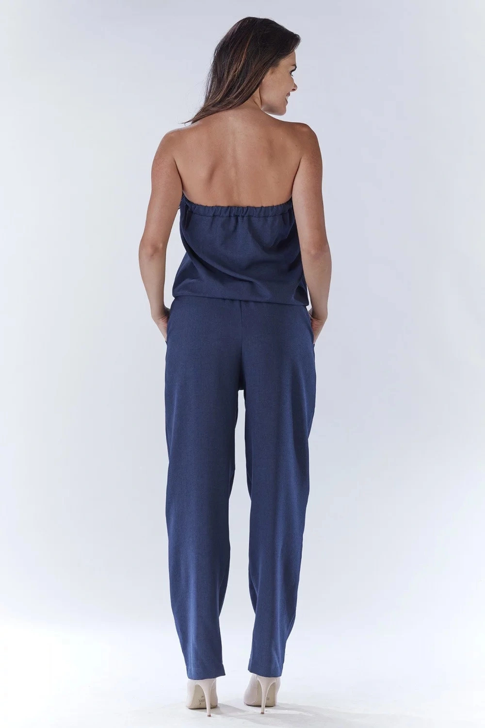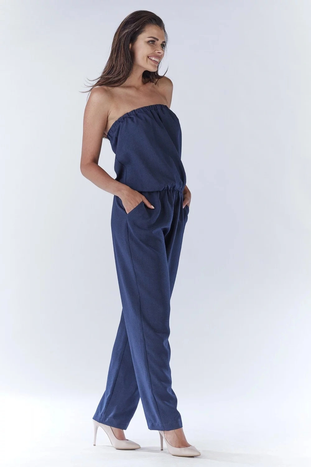 Kombinéza bez rukávů. Pružné v pase a nad výstřihem. Navrženo a ušito v Polsku.