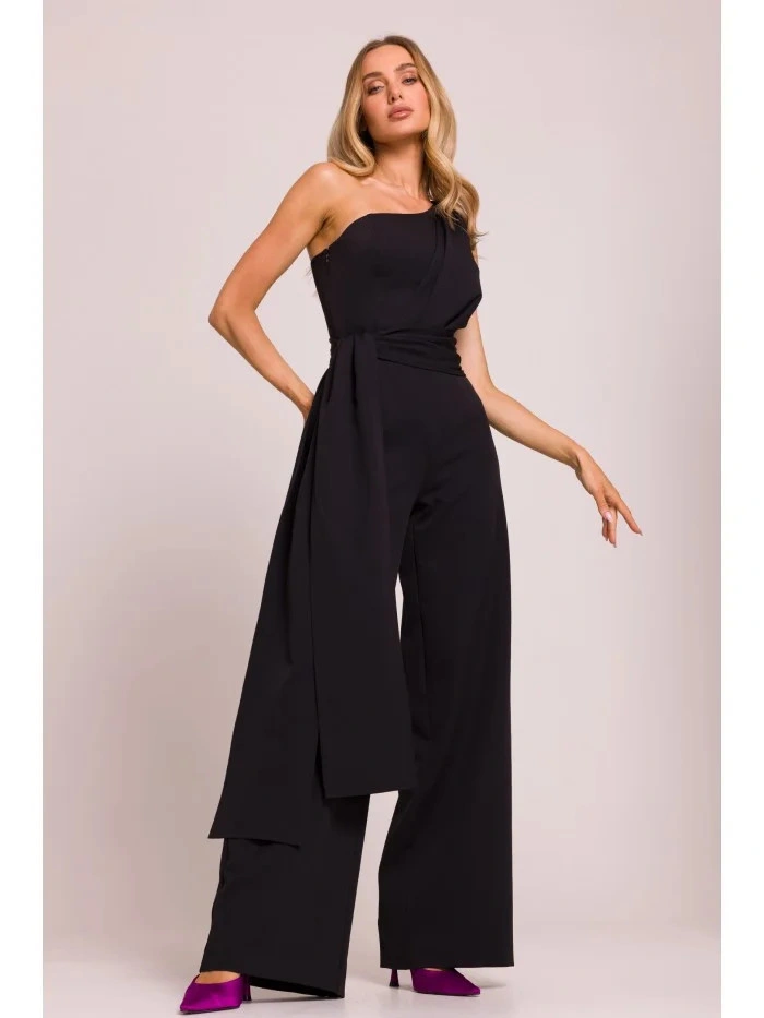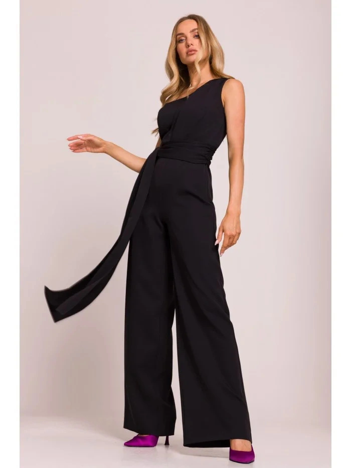 INFORMACE O PRODUKTU: tkaná látka asymetrický jednodílný overal design na jedno rameno se šerpami na zavazování široké nohavice skrytý boční zip naše modelka je vysoká 171 cm a nosí velikost S navrženo a vyrobeno v Polsku