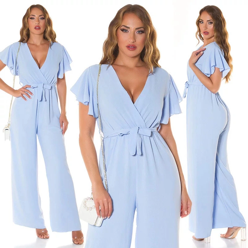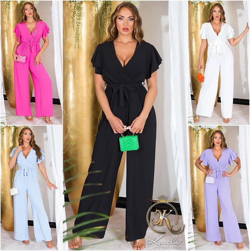 Dámský overal s širokými nohavicemi a páskem na zavázání 0000OV07814 Bílá - Koucla