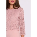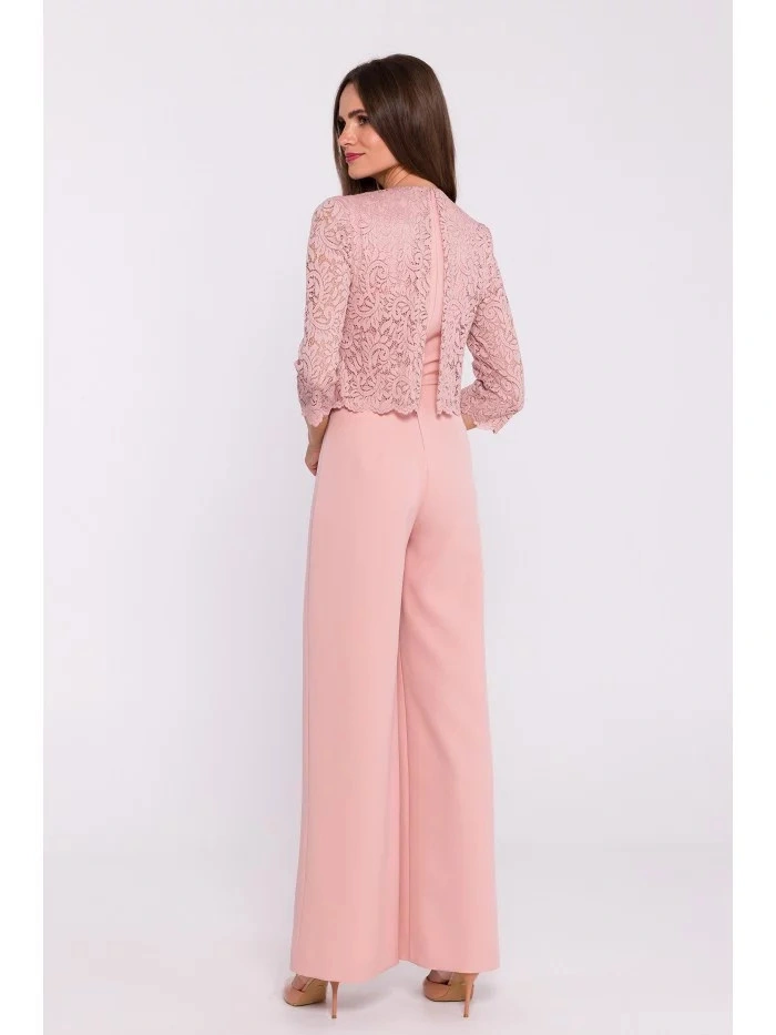 DETAILY PRODUKTU: kombinéza z tkané látky a krajky široká nohavice dvouvrstvý vrchní díl s krajkovou vnější vrstvou krátké krajkové rukávy skrytý zip na zádech naše modelka měří 174 cm a nosí velikost S navrženo a vyrobeno v Polsku