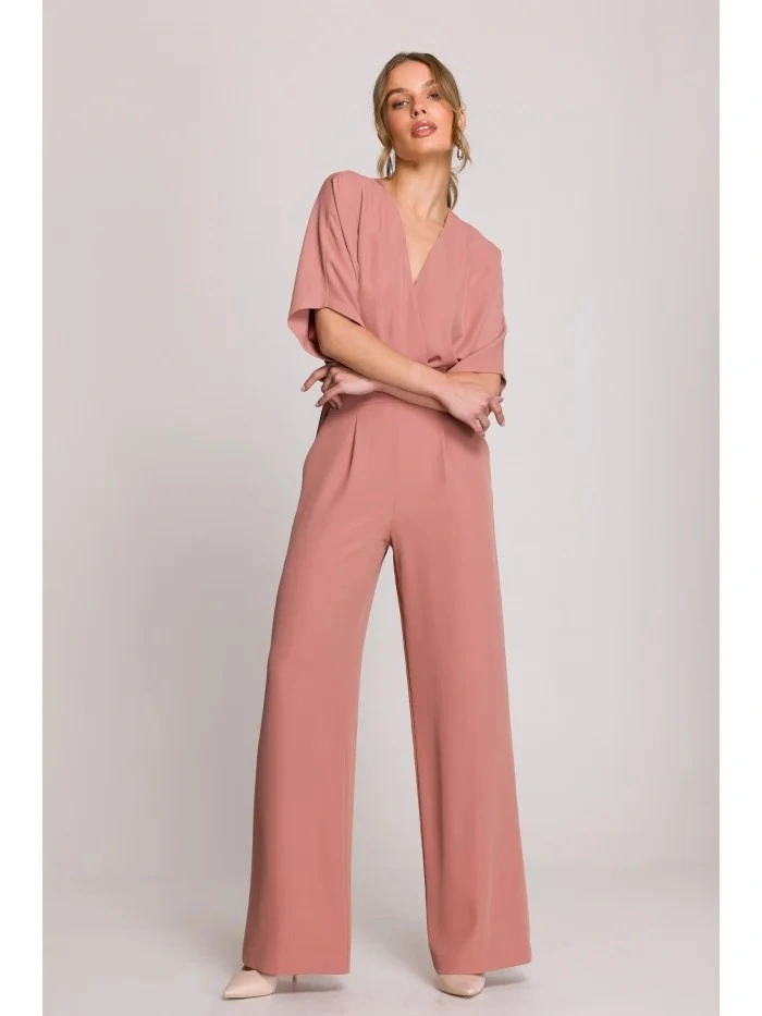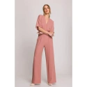 95% polyester 5% elastan DETAILY PRODUKTU: tkaný materiál jednodílný overal zavinovací výstřih ve tvaru V se záhyby krátké rukávy široké nohavice boční kapsy skrytý zip na zádech naše modelka měří 175 cm a nosí velikost S navrženo a vyrobeno v Polsku
