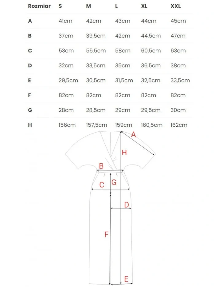 | H | 156cm | 157,5cm | 159cm | 160,5cm | 162cm |