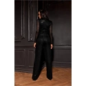 Overal Asurio je ideální volbou pro ženy, které se cítí lépe v kalhotách než v šatech. Overal je vyroben z látky vysýpané flitry. Má elastickou podšívku, která chrání před škrábáním. Model s dlouhými, širokými nohavicemi, asymetrickým výstřihem pokrytý bohatým množstvím flitrů. Bez ohledu na to, kam se chystáte, na večírek, do klubu nebo na velký ples, elegantní maxi overal Asurio zajistí pohodlí na silvestrovskou noc a přidá šarm. Stačí k němu vybrat moderní minimalistické doplňky a okamžitě vytvořit nezaměnitelný vzhled. Elegantní maxi overal Asurio udělá tak velký dojem, že úspěšně nahradí večerní šaty. Produkt je vyroben a ušit v Polsku.