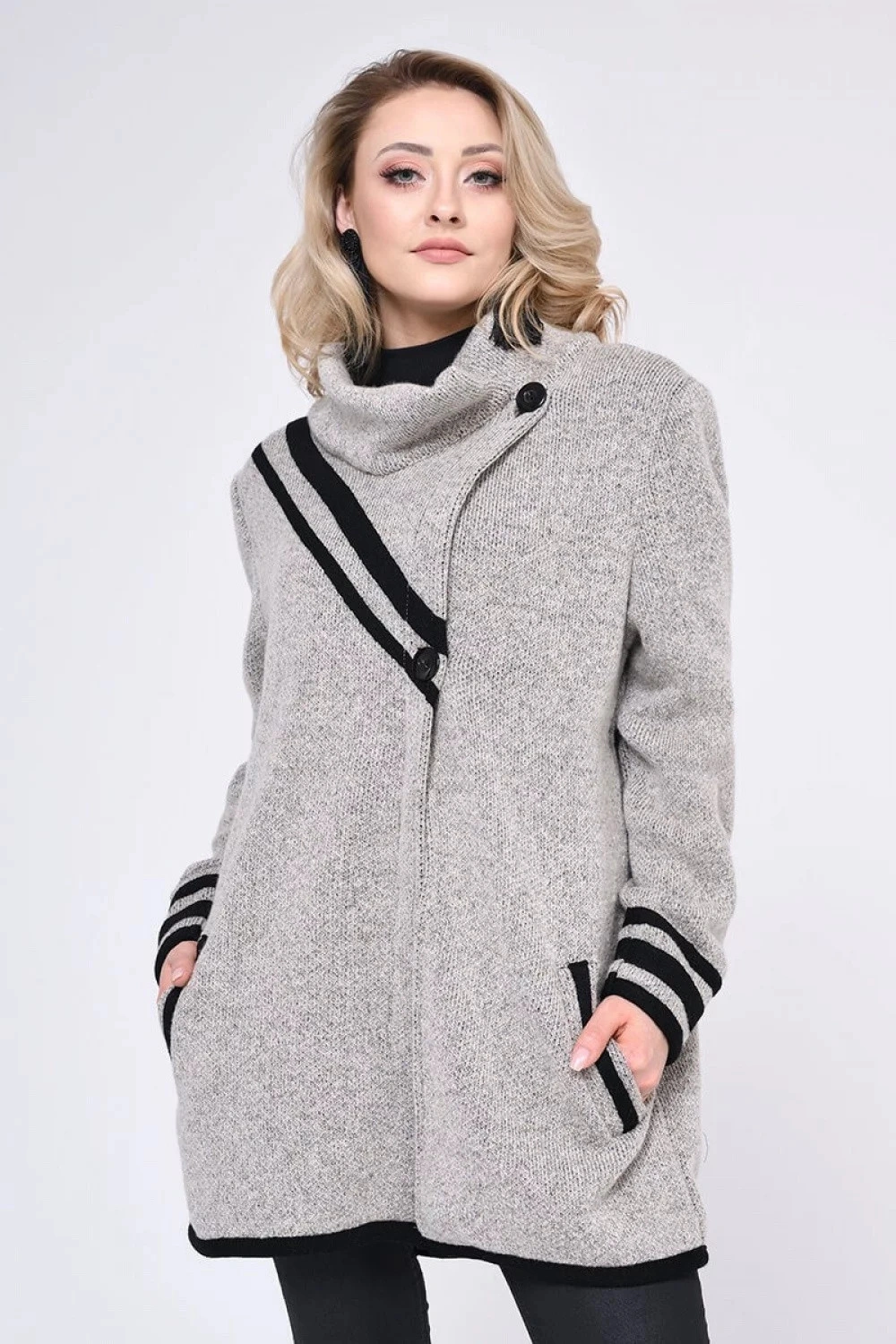 Pletený kabát se zajímavou strukturou a velkými kapsami. Je lehká, teplá a pohodlná a je ideálním sp