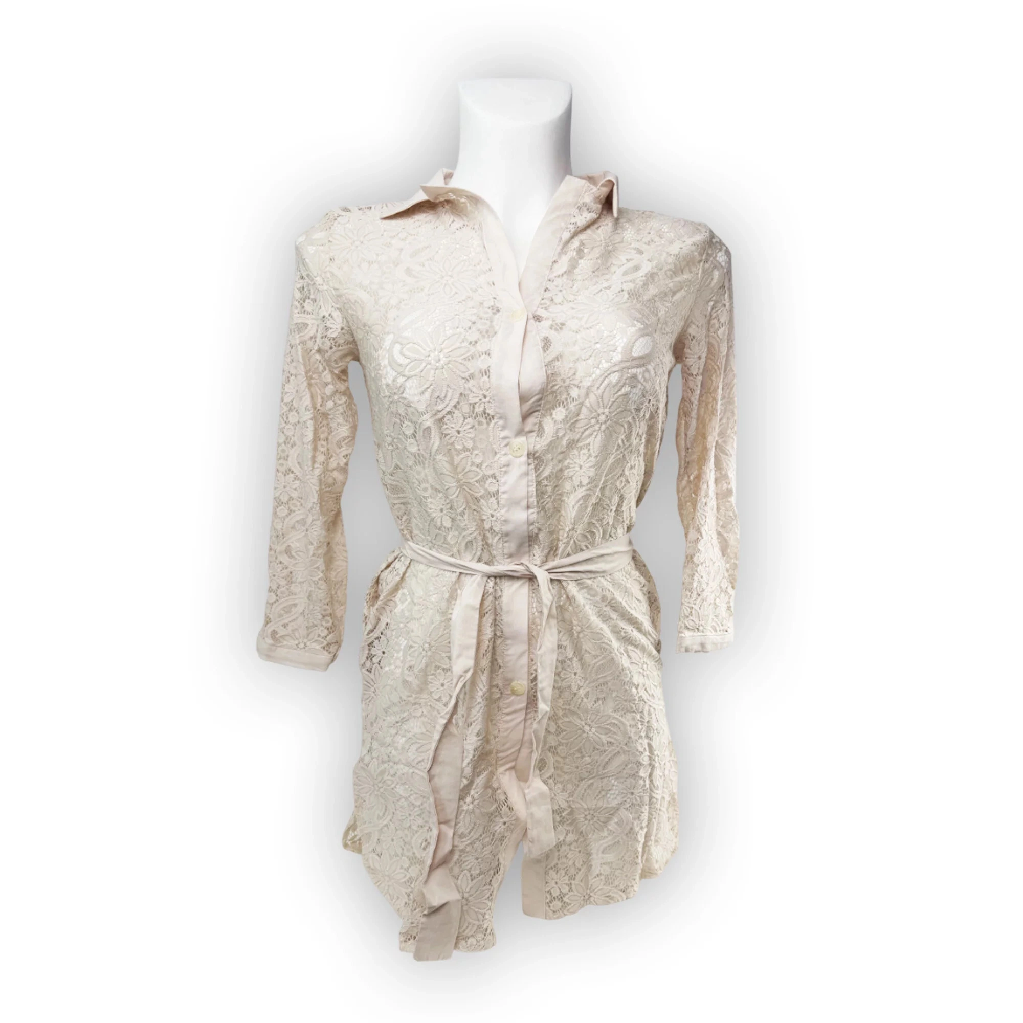 Krajkový dámský župan vhodný k plavkám na pláž i na domácí nošení. Se zavazováním v pase.