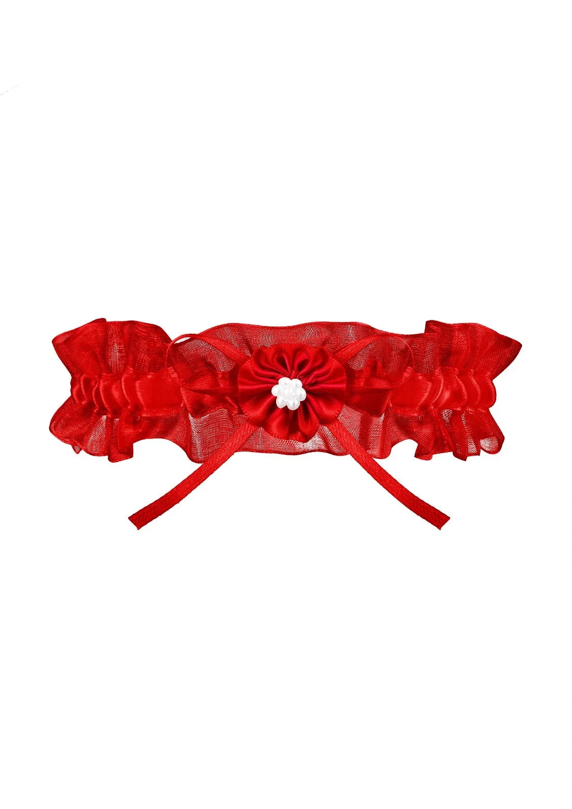 Klienty velmi oceňovaný model podvazků Odessa je vyroben z červeného nařaseného tylu podšitého ladíc