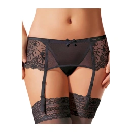 Podvazkový pás 032 Ewana - černá barva - elegantní provedení - z jemného tylu a vyšívané krajky - délku popruhů je možné libovolně nastavit
