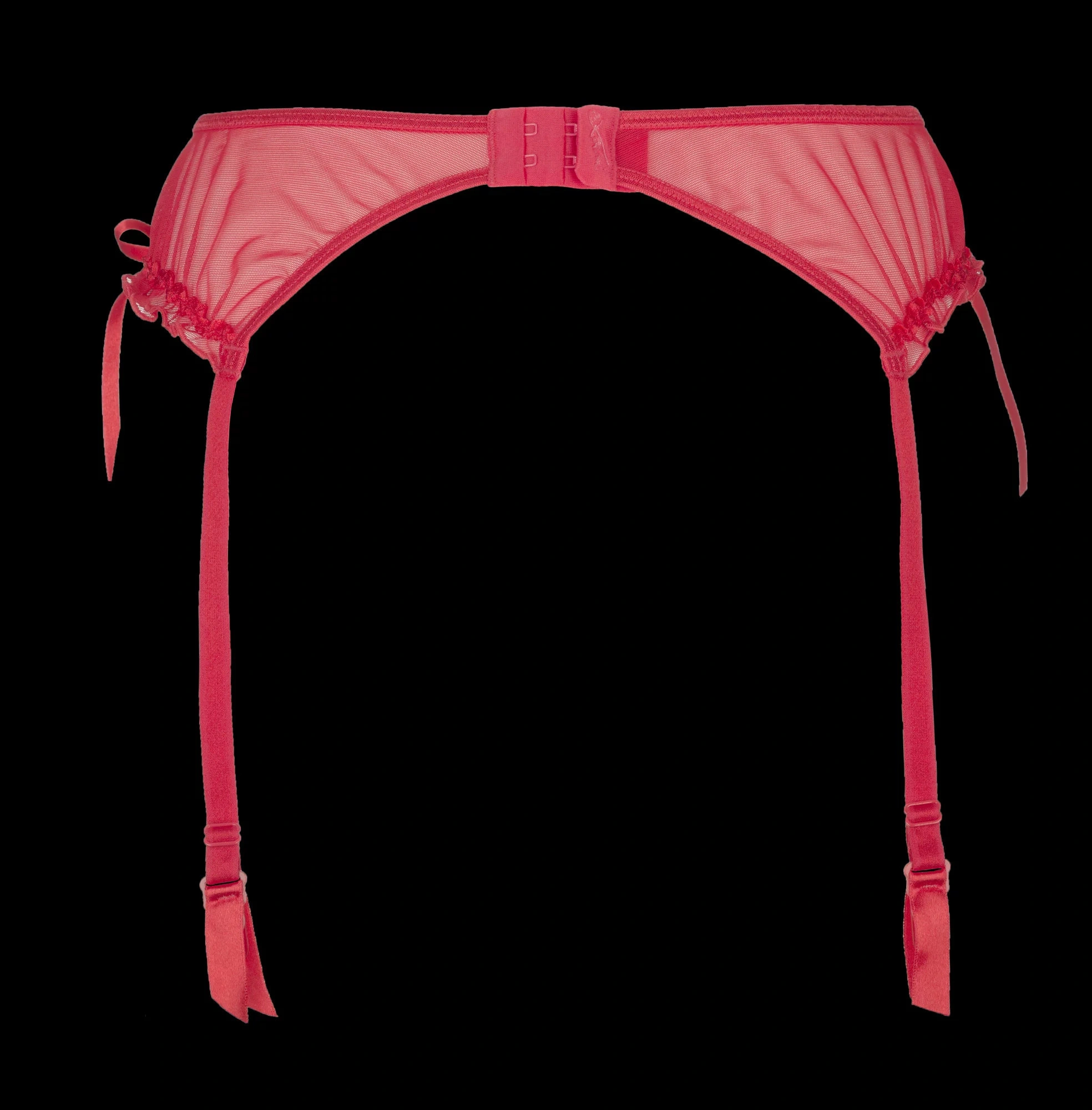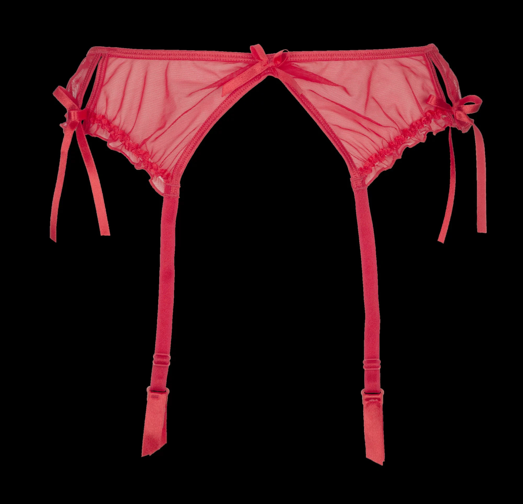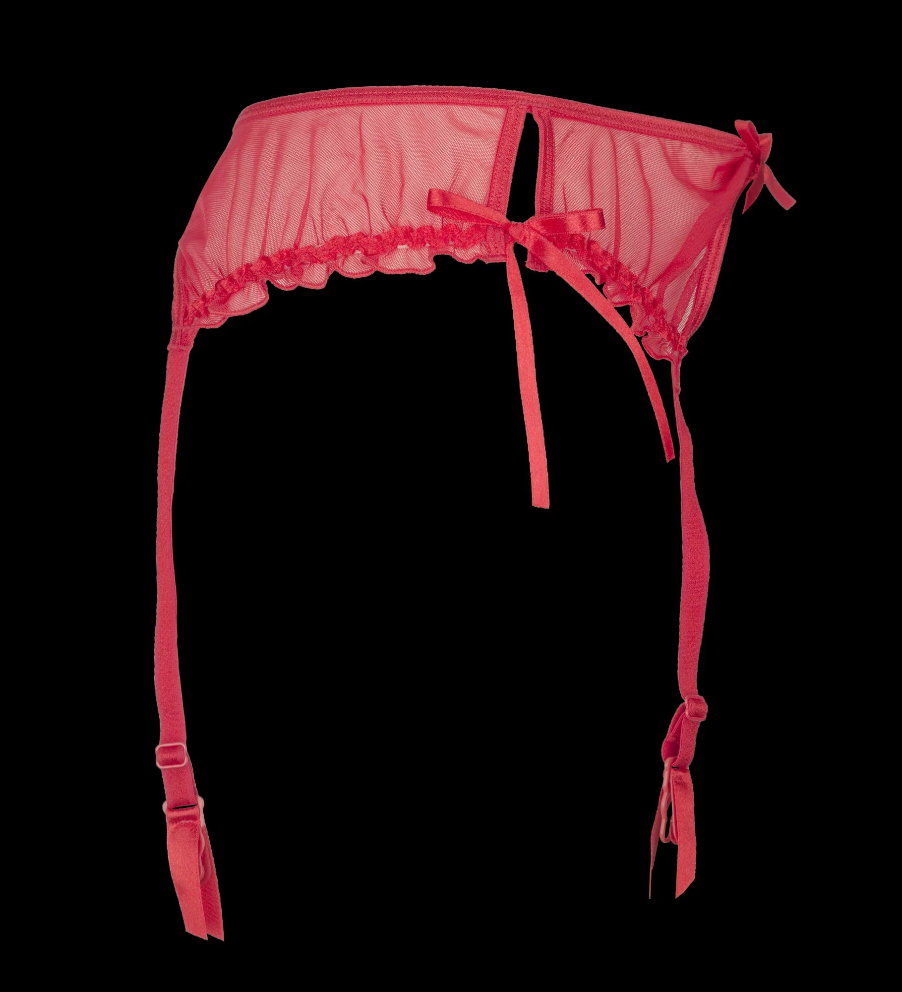 | Ohnivě červený nízký podvazkový pás V-8742 smyslně zvýrazní křivky vašich boků Podvazkový pás V-8742 smyslně zvýrazní křivky vašich boků. Hravé zdobení v podobě volánků a mašliček dodává podvazkům zdánlivě nevinný půvab... Podvazkový pás vypadá obzvlášť svůdně v kombinaci s podprsenkou V-8741, tangy a punčochami V-7084 |