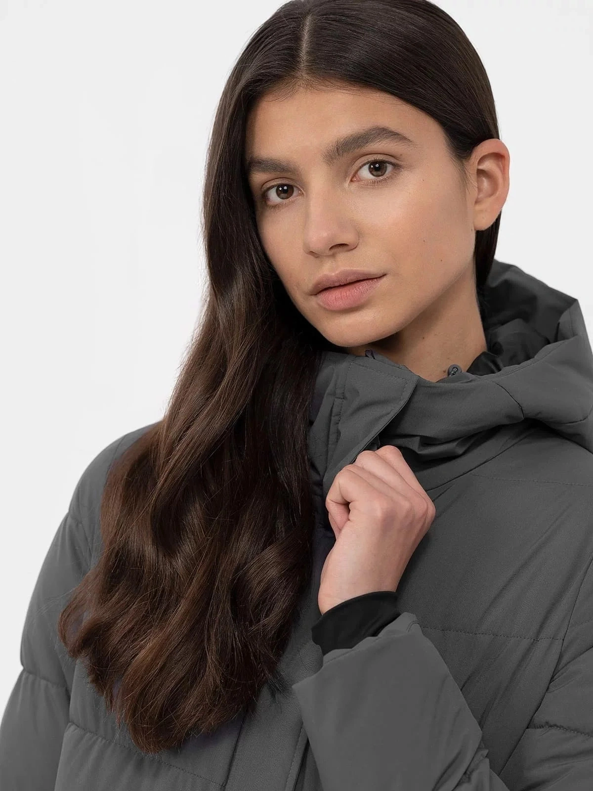 Dámský péřový prošívaný kabát. Ideální pro každodenní zimní stylizace. Díky syntetické péřové výplni a dlouhému střihu Vám zajistí pohodlí i v chladnějších dnech.