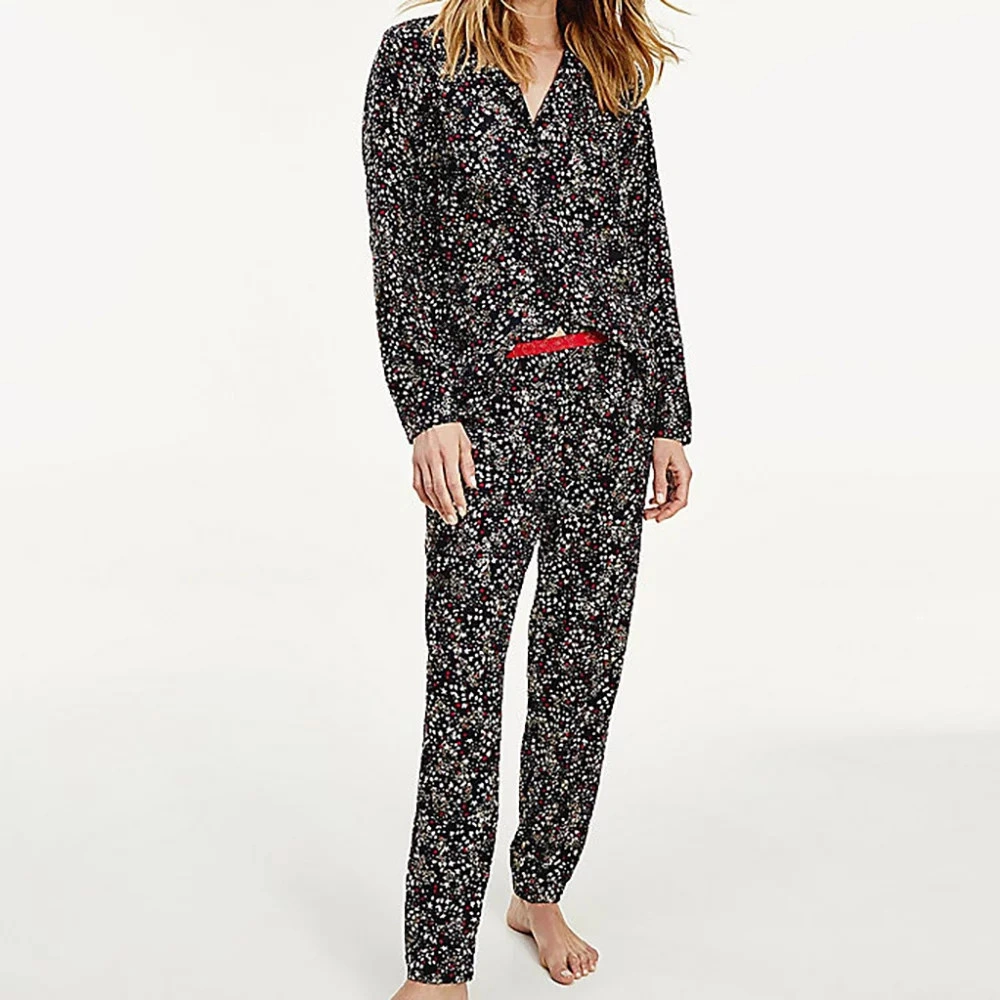 Dámský set kalhot a trička na spaní z kolekce Tommy Hilfiger vám poskytne maximální pohodlí díky příjemnému materiálu a volným kalhotám s pružnou gumou v pase.