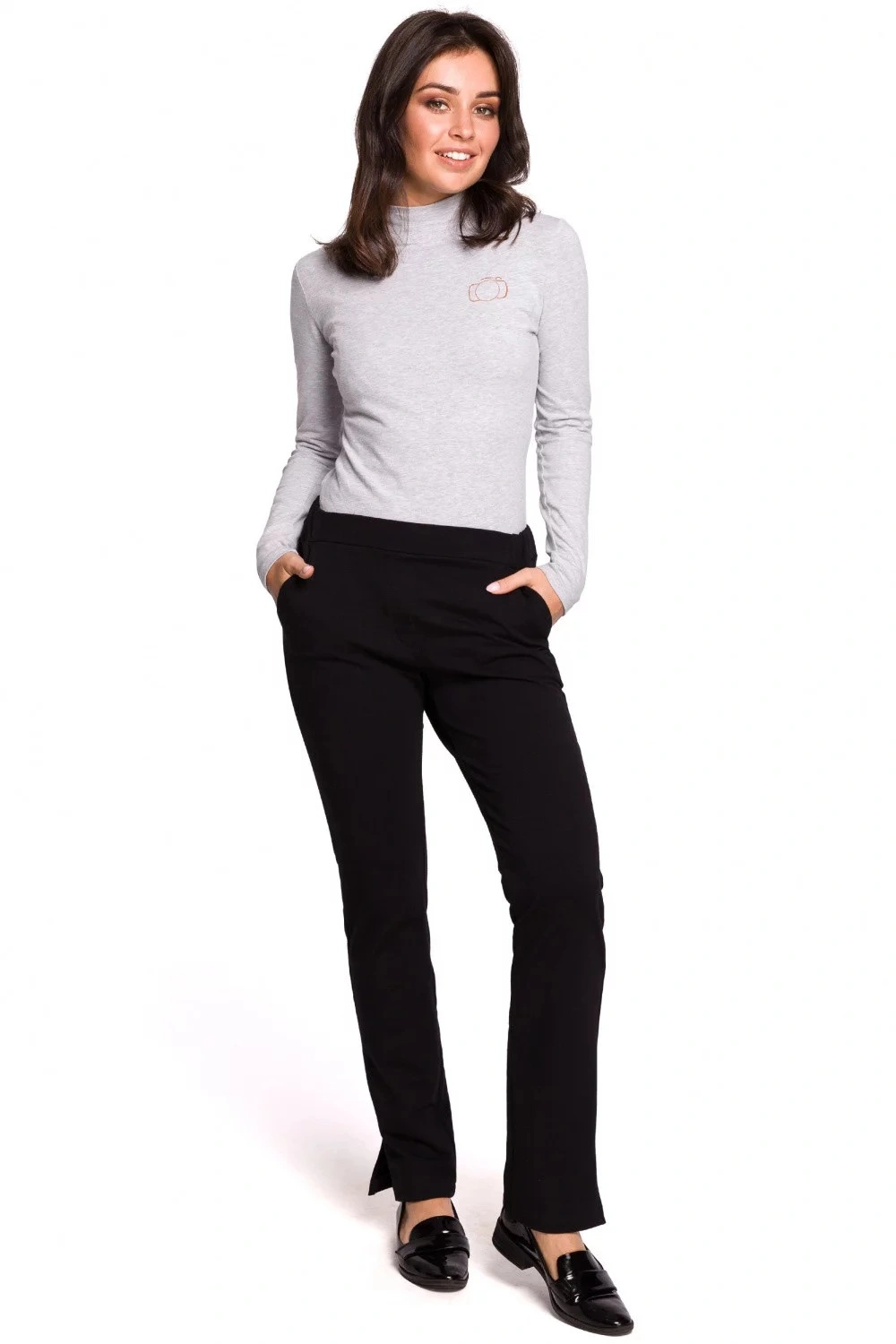 Vysoký pas, zapínání na knoflíky, ozdobná spona v pase, kapsy, z lehké elastické bavlny. 97% bavlna