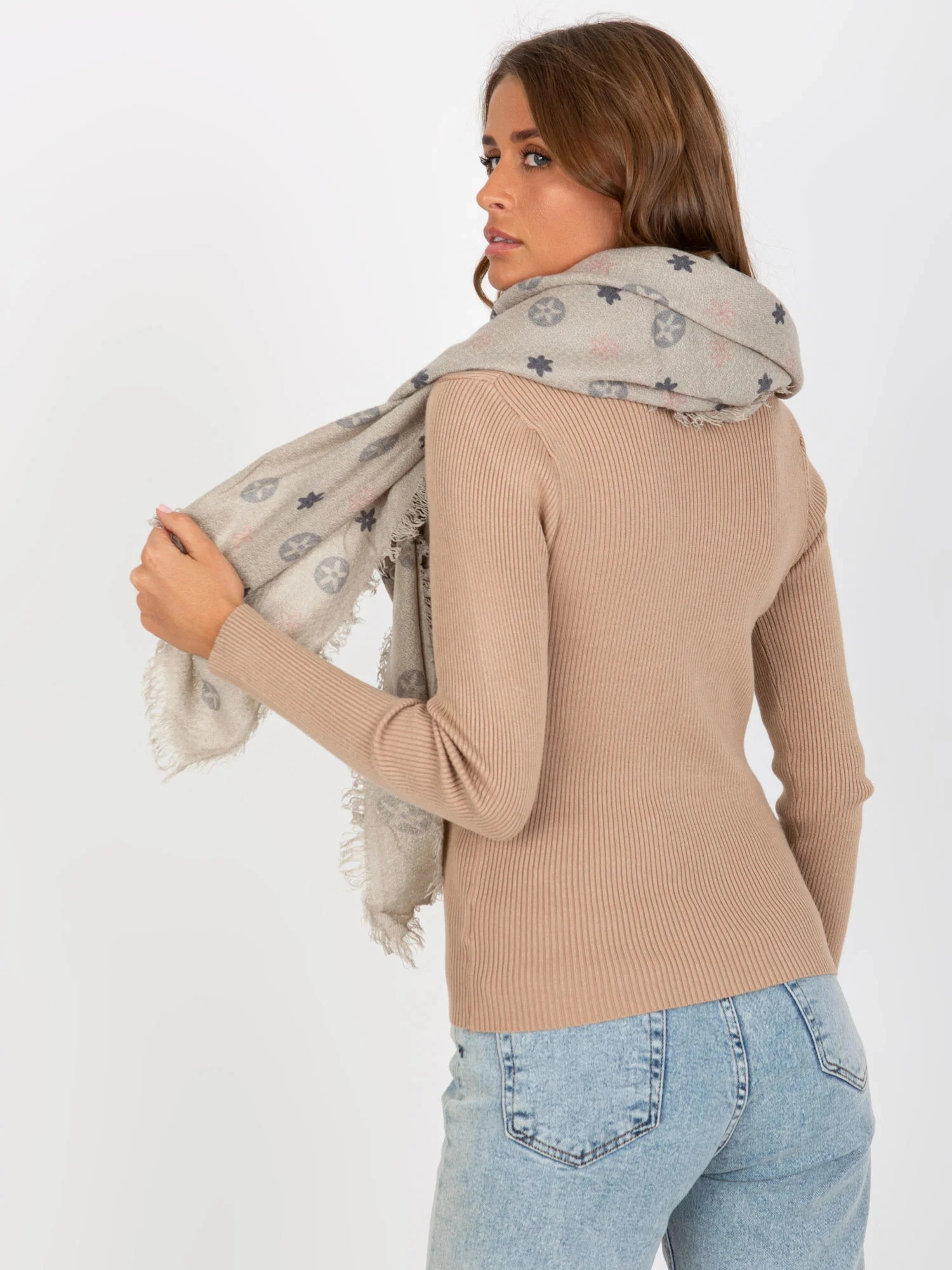 Šedý dámský vzorovaný šátek .