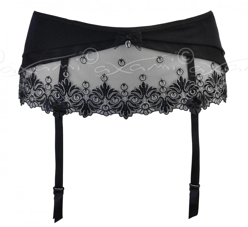 Dámský sexy podvazkový pás Bell V-5132 Černá se stříbrnou - Axami