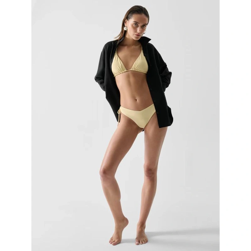 Spodní díl bikinz měkké a pružnésyntetické tkaniny selegantnímbezešvým designemje ideální na léto.Stylový výřez vpřední části azavazování nabocích umožňujípřizpůsobení střihu a zajišťují pohodlí a volnost pohybu. Díky hladképodšívce poskytuje spodní díl bikin vysokýkomfortpo celý den.