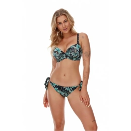 Klasický spodní díl bikin z úpletu s motivem sváteční palmy. Zavazování na bocích. Elastan 15 % Po