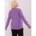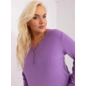 Fialový plus size svetr s knoflíky u výstřihu .