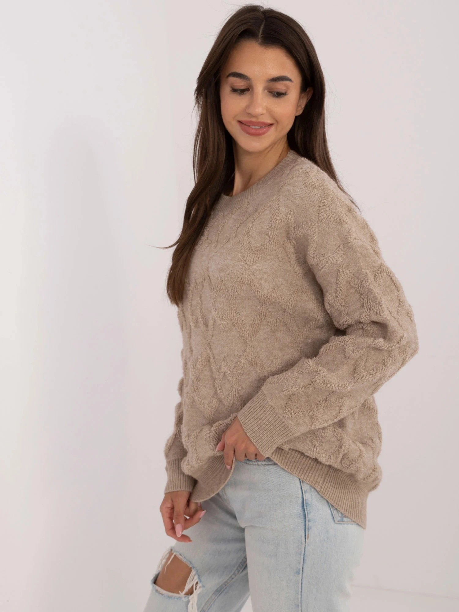 Rozměry svetru v jedné velikosti měřené na plocho: šířka v podpaží - 62 cm, délka rukávu - 60 cm, celková délka - 69 cm.