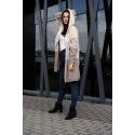 Nadčasový model s límcem a klopami. Mírně vypasovaný, jednořadově zapínaný. Délka nad kolena. Boční