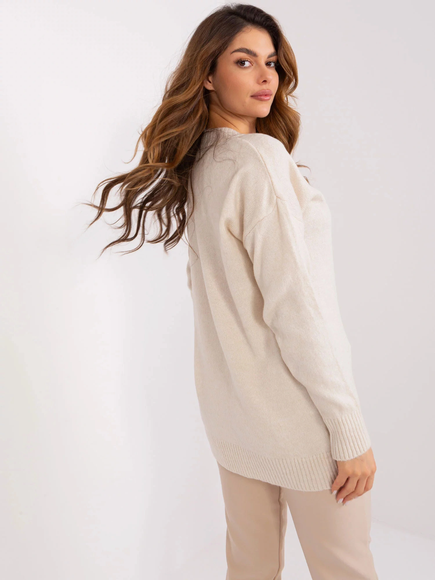 Rozměry svetru v jedné velikosti měřené na plocho: šířka v podpaží - 59 cm, celková délka - 72 cm, délka rukávu - 60 cm.