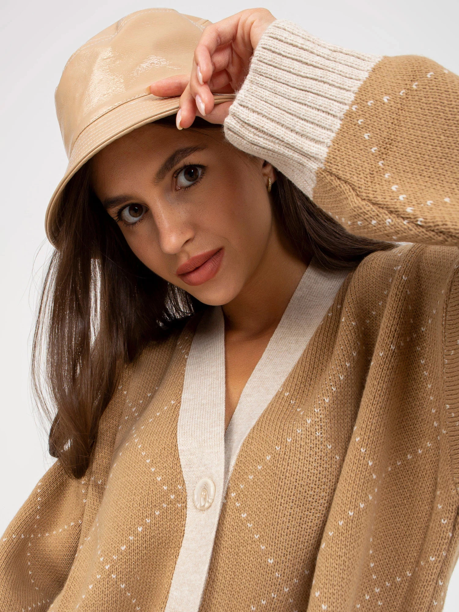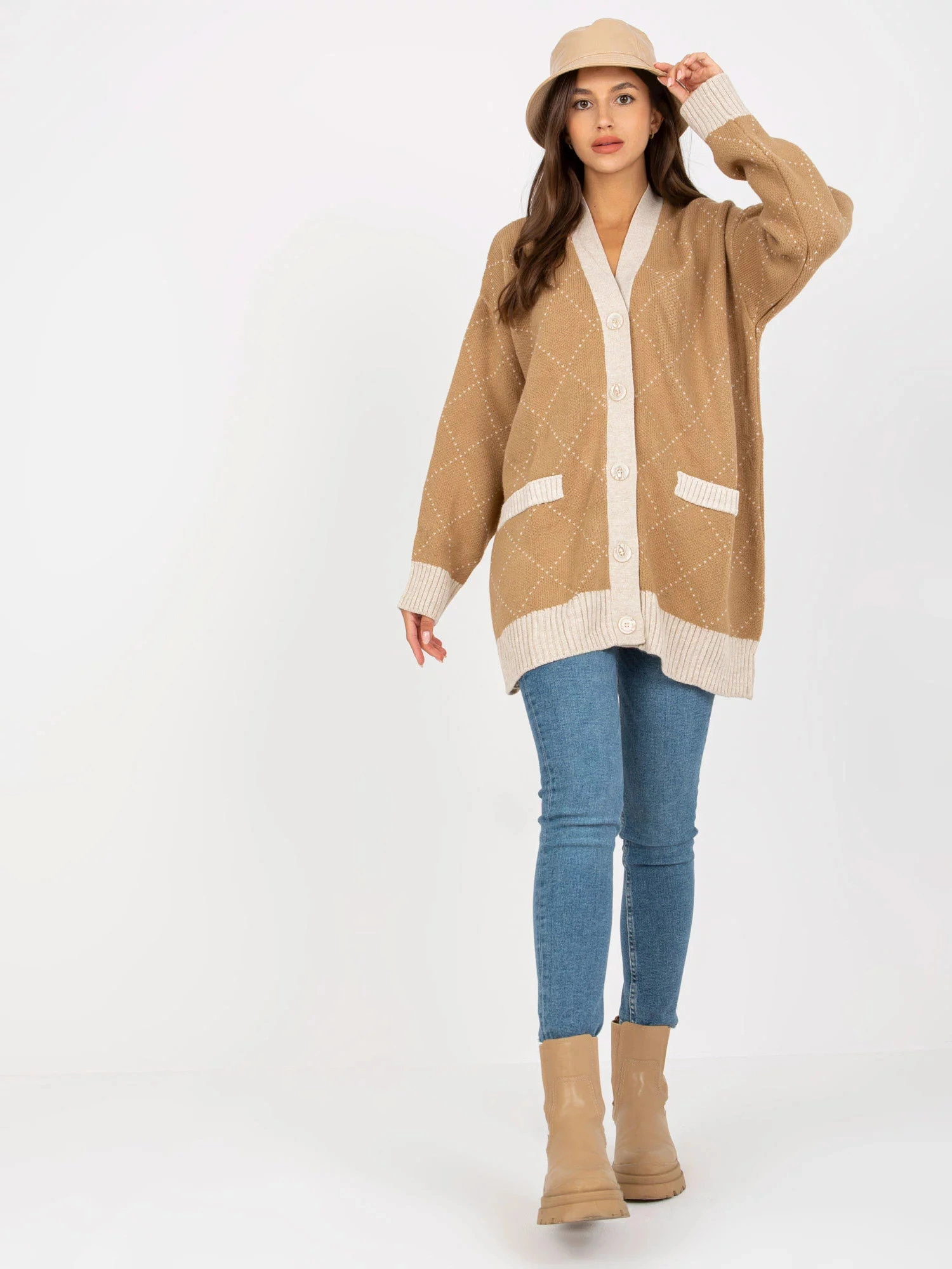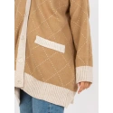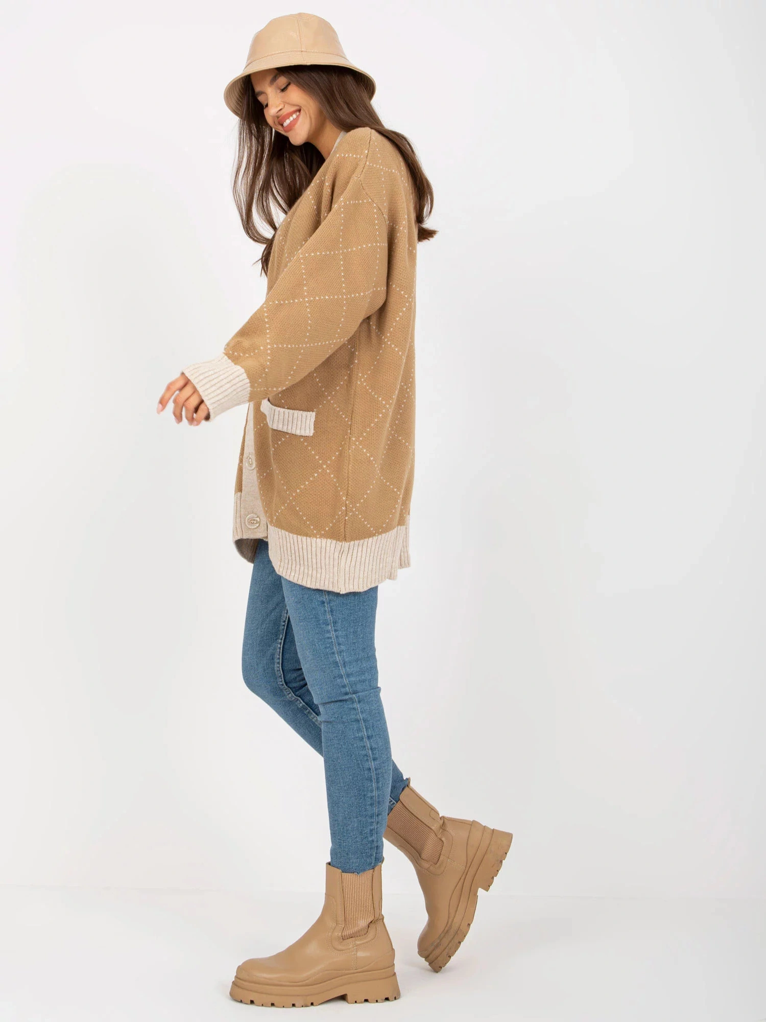 Rozměry svetru v jedné velikosti měřené na plocho: šířka v podpaží - 65 cm, celková délka - 74 cm, délka rukávu - 56 cm.