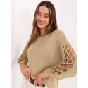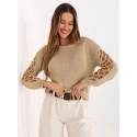 Dámský padavý svetr v béžovo-zlaté barvě.