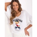 Dámský pletený svetr s véčkovým výstřihem. Na prsou potisk Los Angeles California a medvídek.