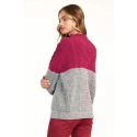 Svetr je nepostradatelnou součástí podzimního a zimního šatníku. Barevná kombinace tohoto modelu se dobře hodí k šedé a bílé. Spodní část svetru je navíc zdobena stříbrnou nití, díky které bude váš vzhled vypadat jedinečně.