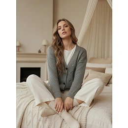Tento dámský svetr s jemnými prolamovanými detaily je ideální volbou pro chladnější dny. Je vyroben z měkkého úpletu pro pohodlí a styl, klasické knoflíky mu dodávají elegantní nádech a díky univerzálnímu střihu je ideální pro každodenní i formálnější outfity.