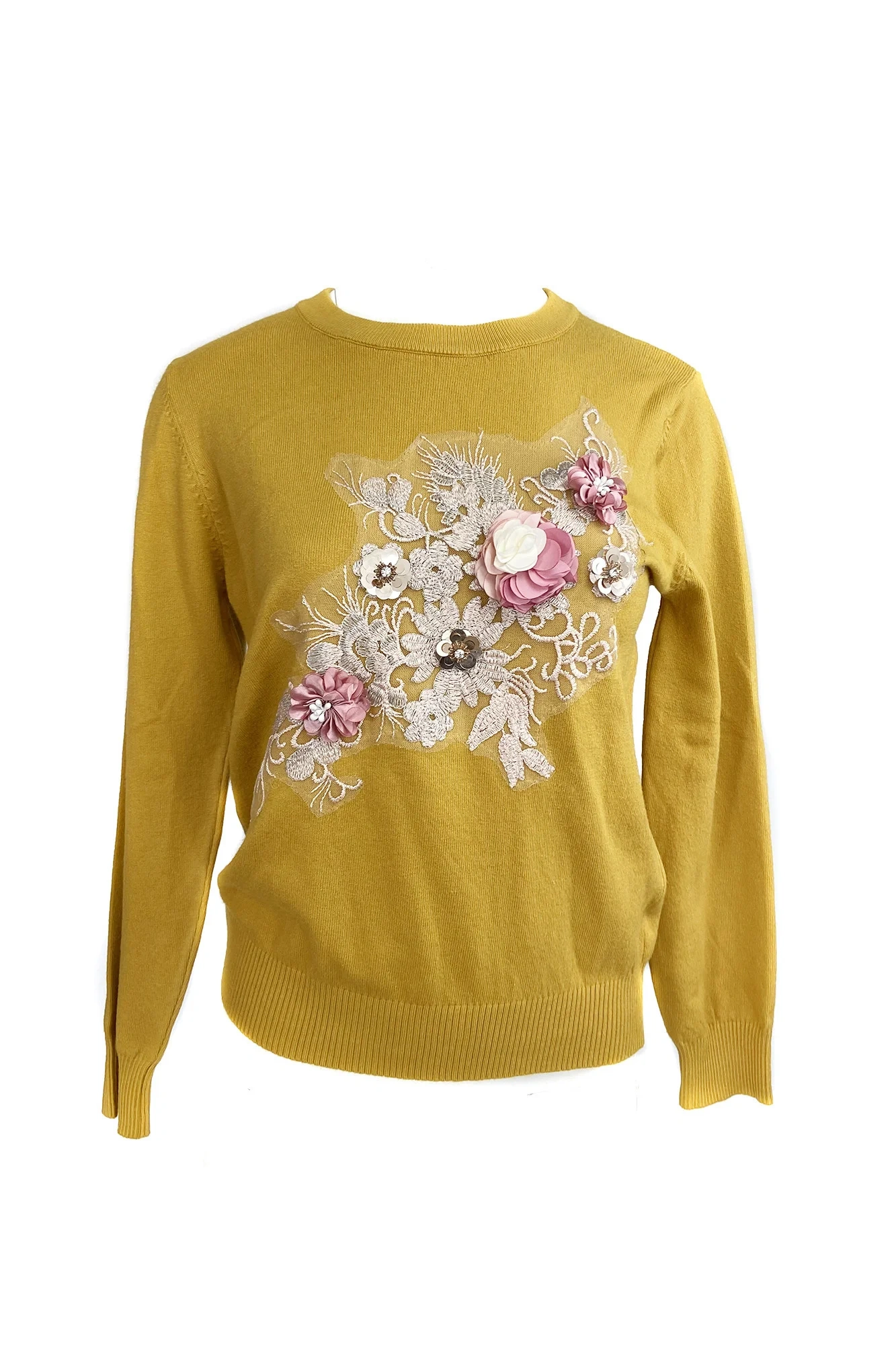 Dámský svetr s aplikací - Gemini hořčicová L/XL