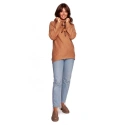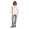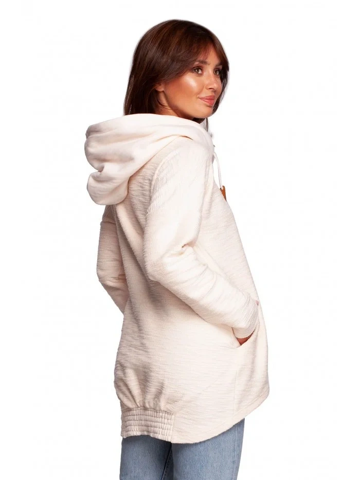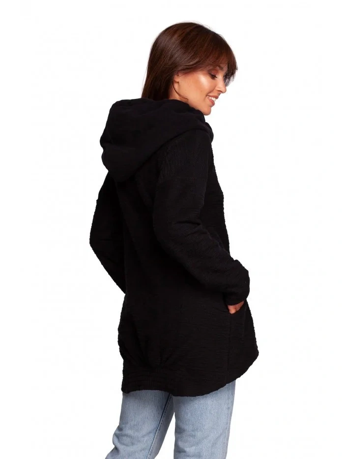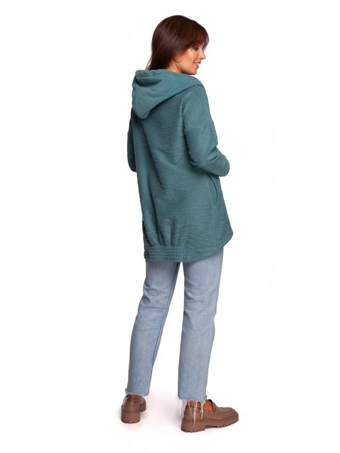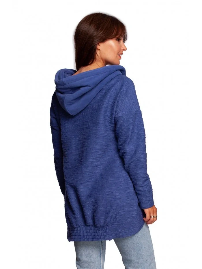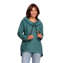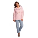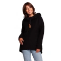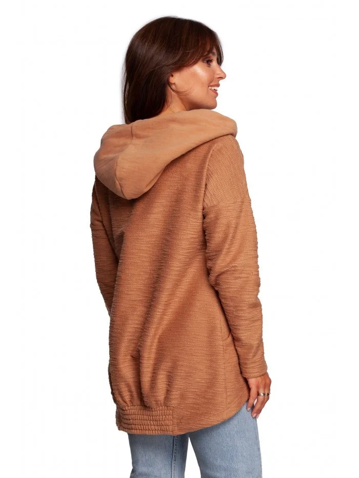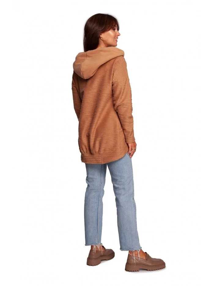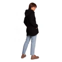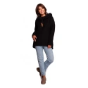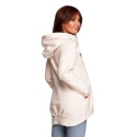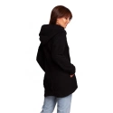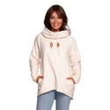 - mikina s vysokým límcem a stahovací kapucí zakončená ozdobnou umělou kůží