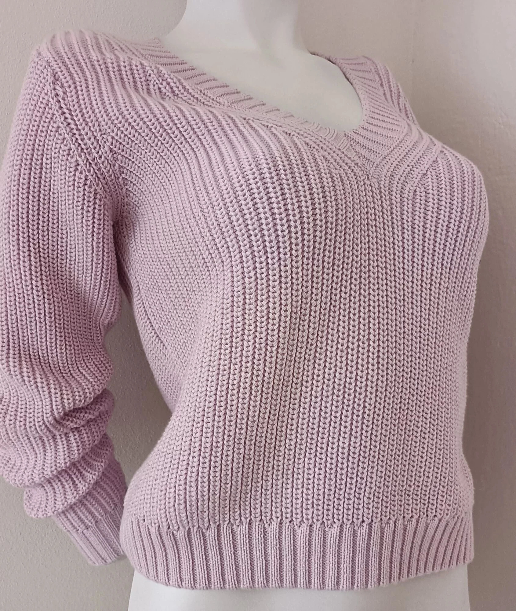 Minimalistický svetr z žebrovaného úpletu s hlubokým výstřihem do V. Uvolněný střih působí lehce sportovním dojmem. Vyrobeno v polské rodinné pletárně.