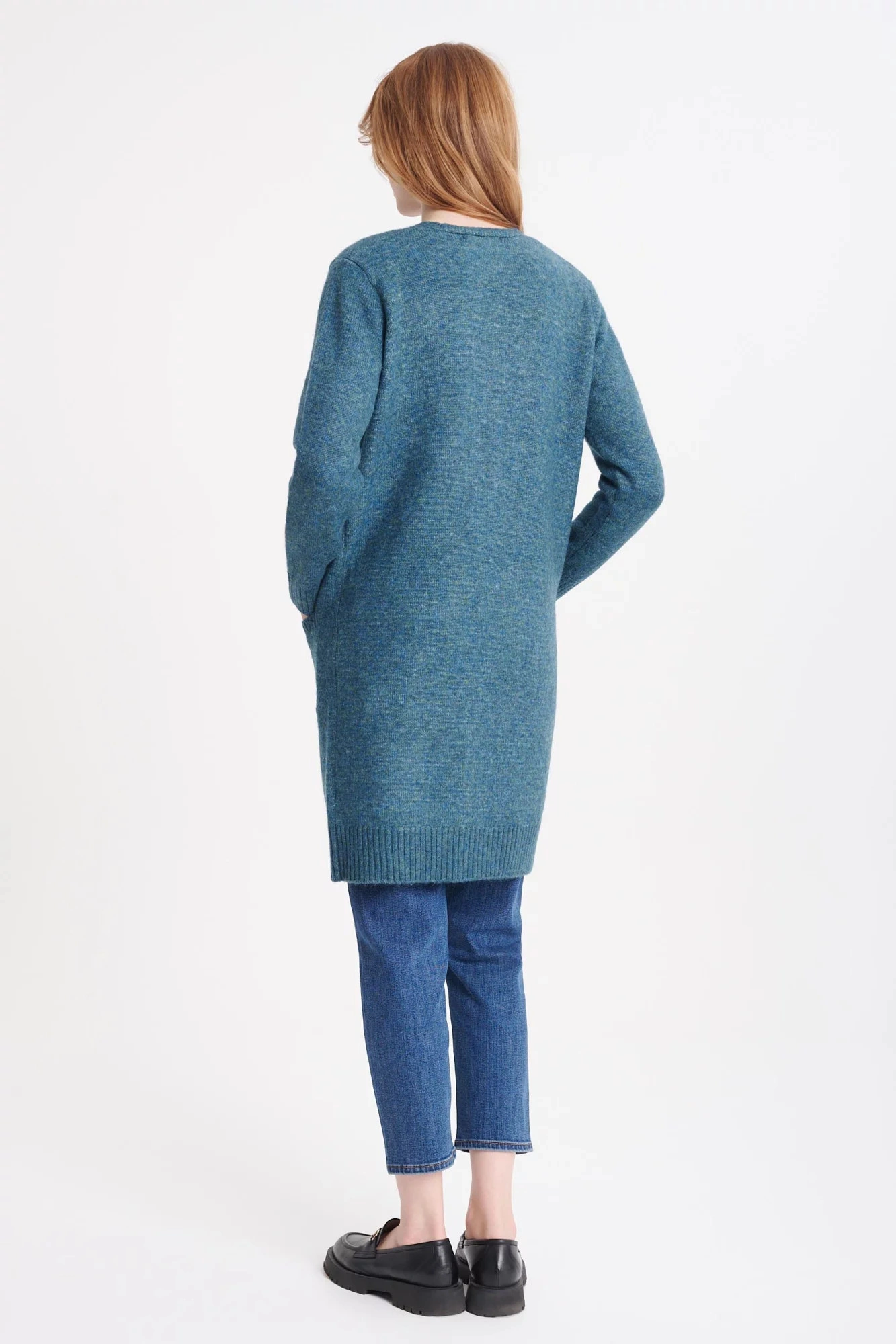 Dlouhý svetrMateriálové složení: 52% akryl, 42% polyamid, 6% vlnaKategorie: Dámské oblečení | Svetry a kardiganyKolekce: Podzim/ZimaPohlaví: ŽenskéBarva: Modrá