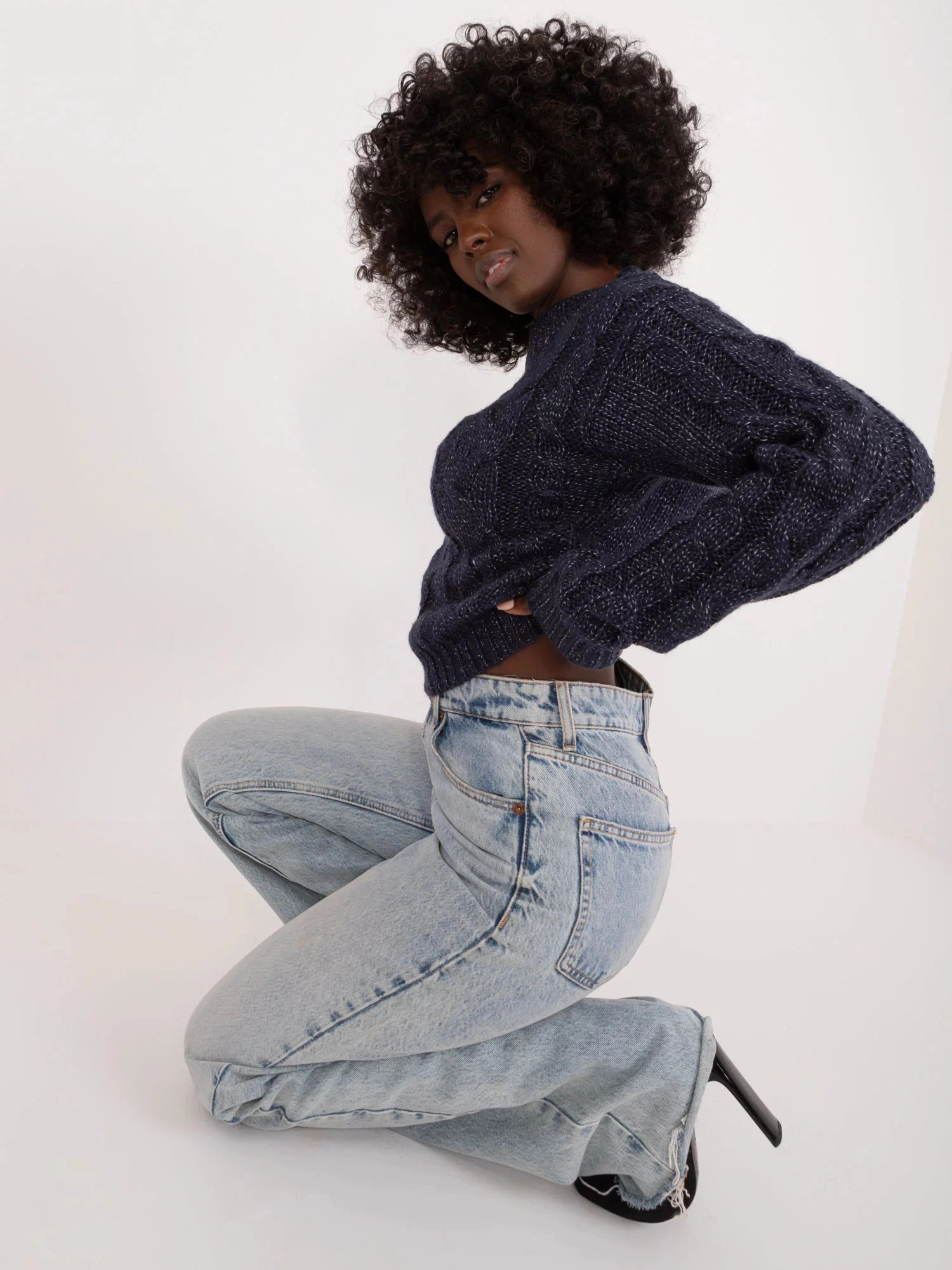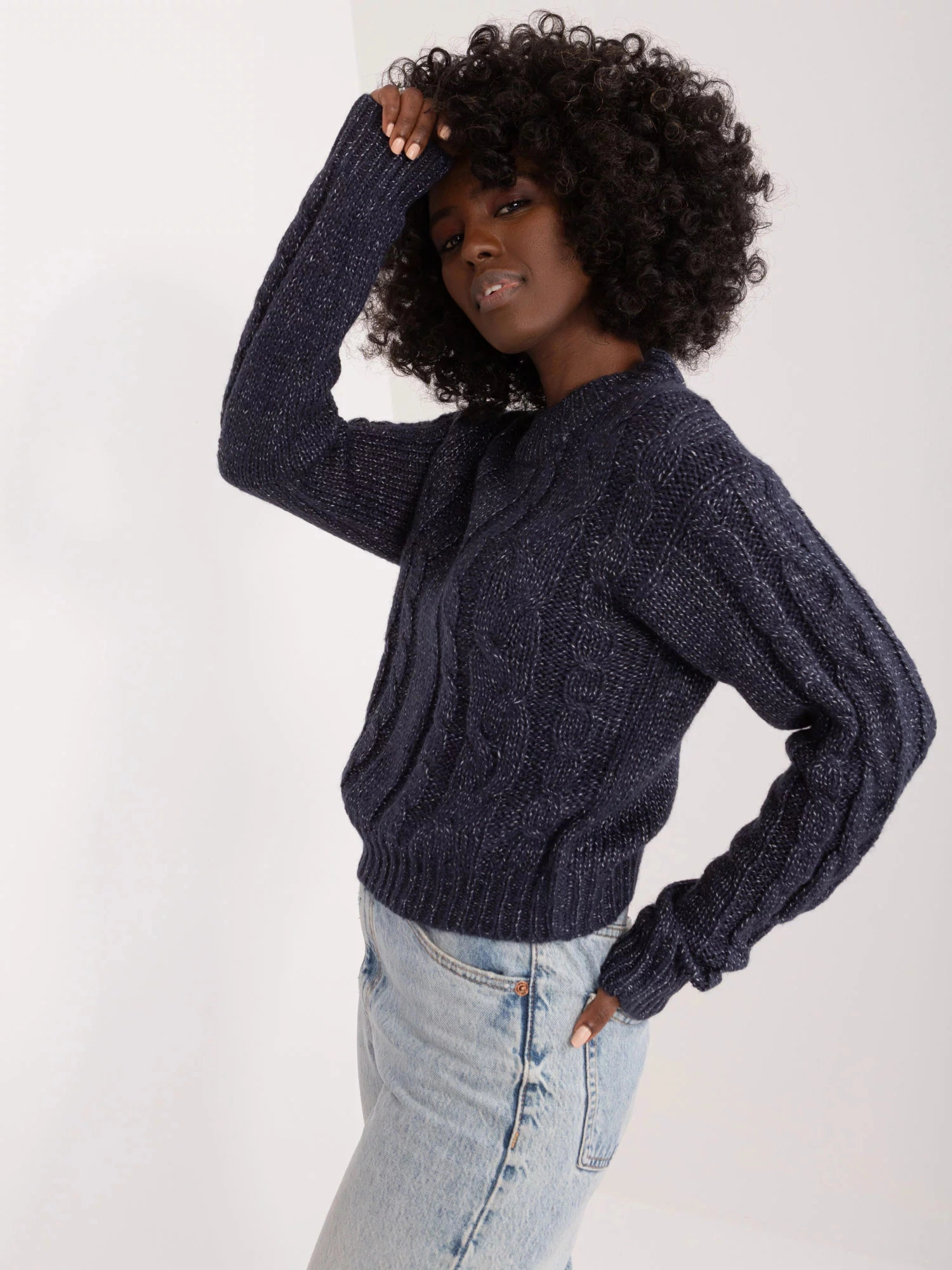 Rozměry svetru ve velikosti S měřené na plocho: šířka v podpaží - 41 cm, délka rukávu - 63 cm, celková délka - 42 cm.