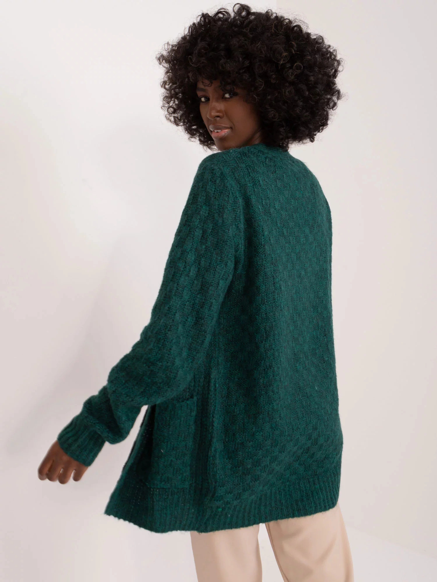 Rozměry svetru ve velikosti S měřené na plocho: šířka v podpaží - 49 cm, délka rukávu - 67 cm, celková délka - 69 cm.