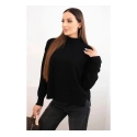 Model má polorolák, který jemně obepíná krk a dodává celku eleganci. Rozparky po stranách dodávají lehkost a dělají svetr dobře kombinovatelným jak s džíny, legínami, tak i se sukní.