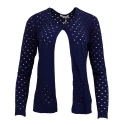 Elegantní dámská halenka Favab košilového střihu, tmavě modré barvy s bílým límečkem a lemováním ko