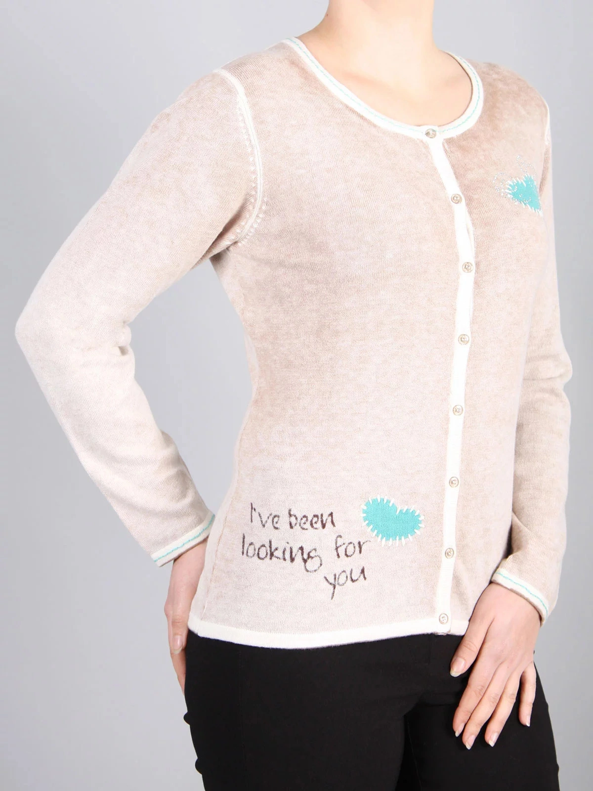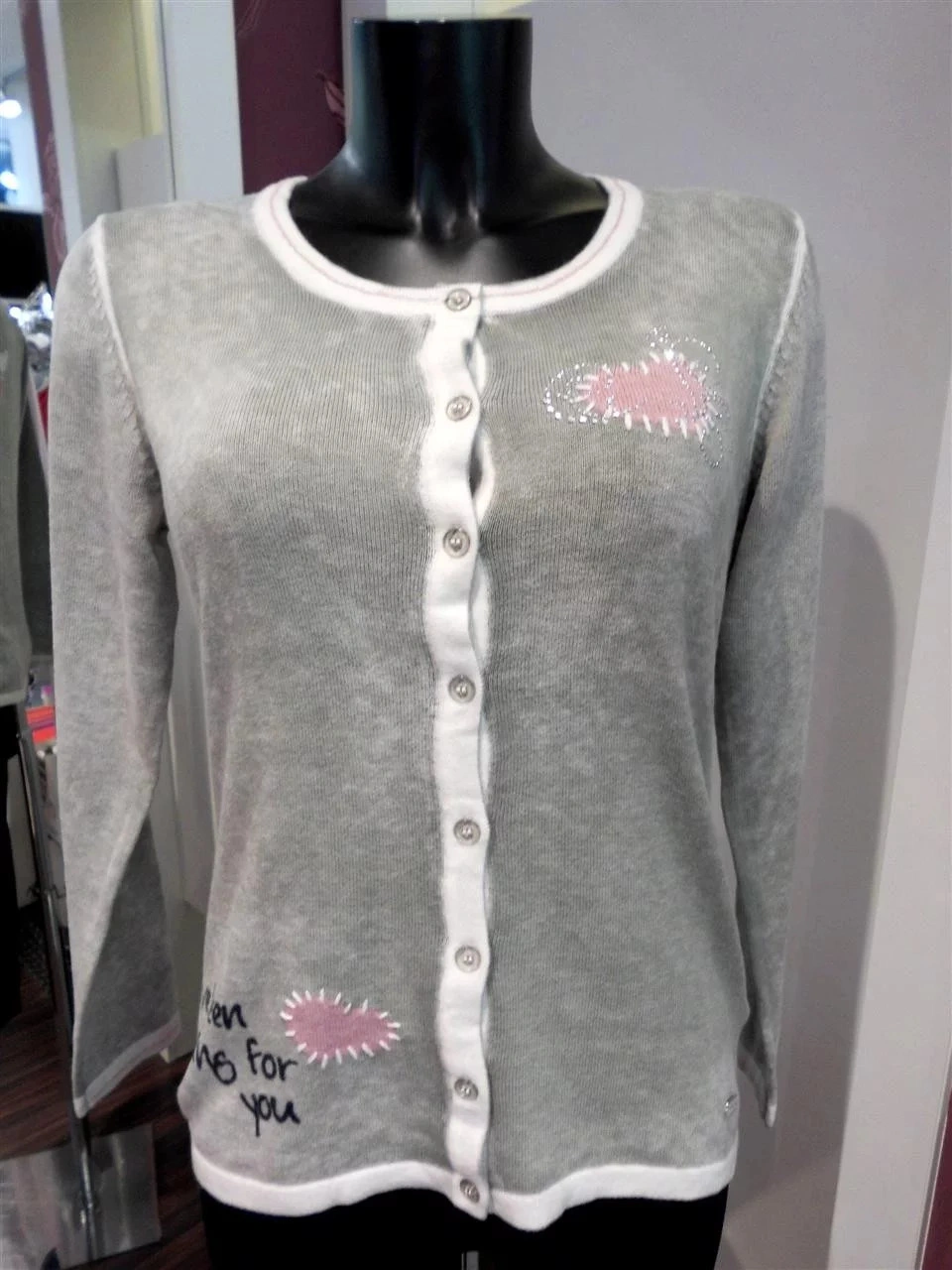 Prostorný kardigan se srdíčkovým výstřihem a velkými knoflíky. Volné a ležérní, díky jemné prolamova