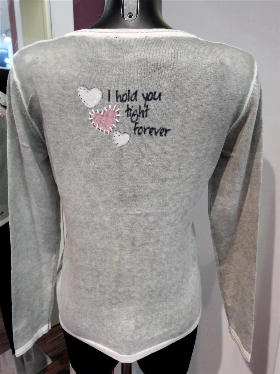 Mikina z pletené mikiny ponechaná vcelku. Rukávy zakončené manžetou v kontrastní barvě. Skvěle se ho