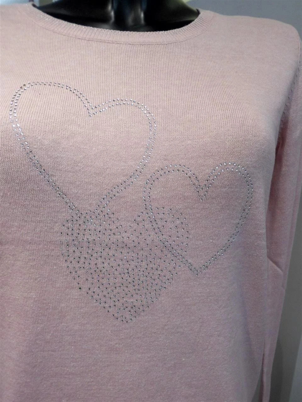 Dámský svetřík Rhodos, je lehounký svetřík s jemnou kamínkovou aplikací 3 srdíček.