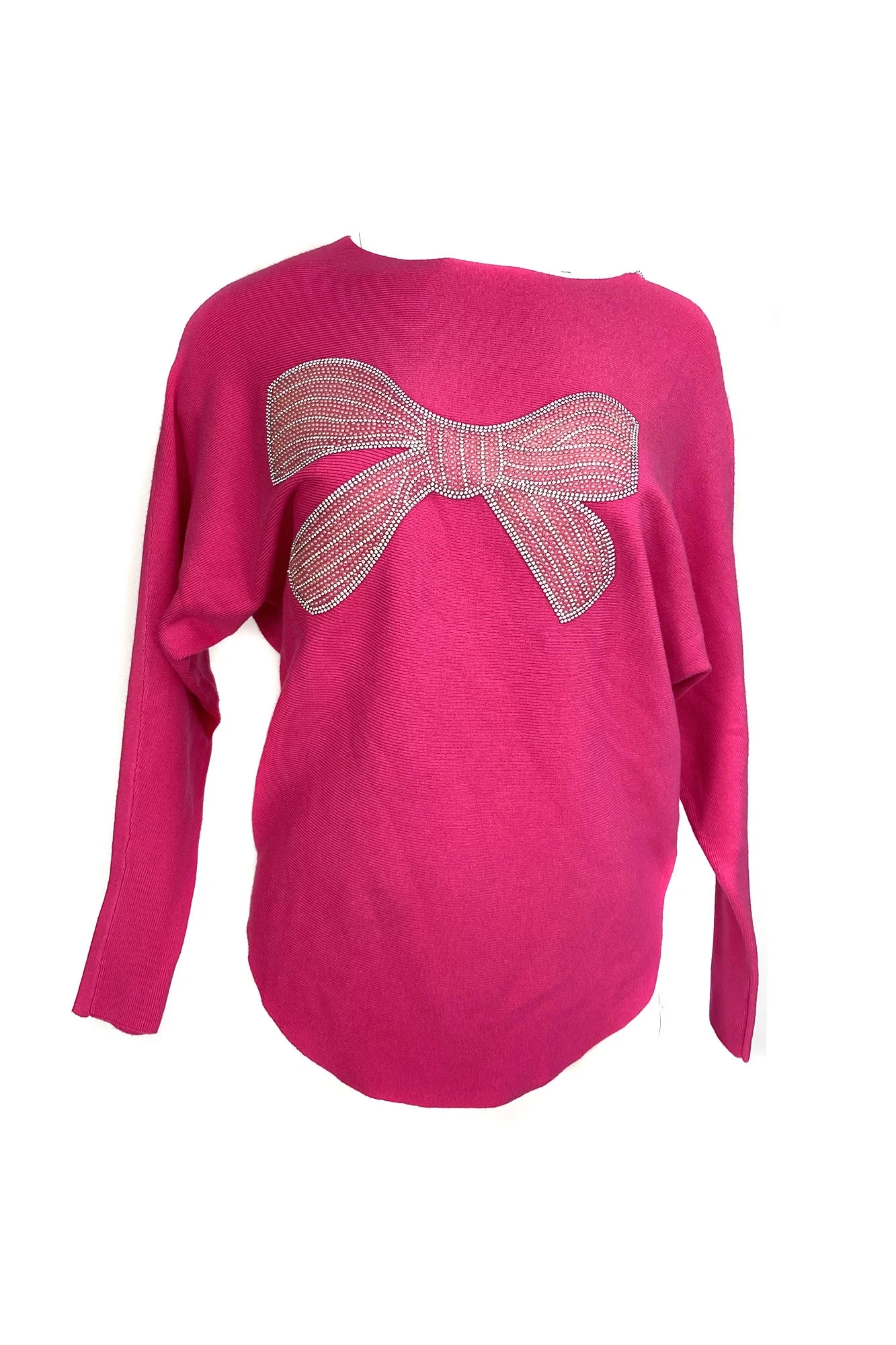 Dámský svetřík s aplikací mašle na předním díle - Gemini fuchsie S/M